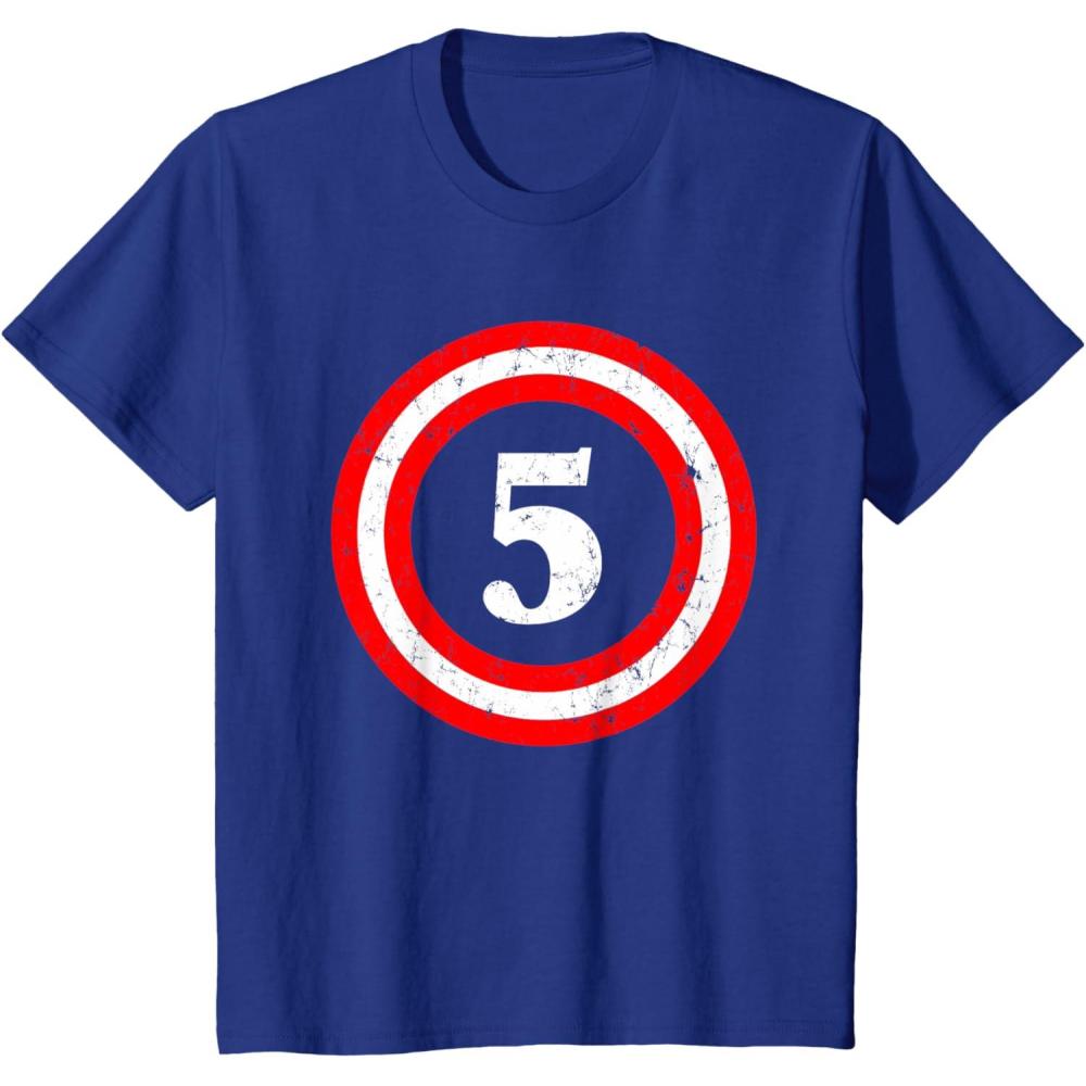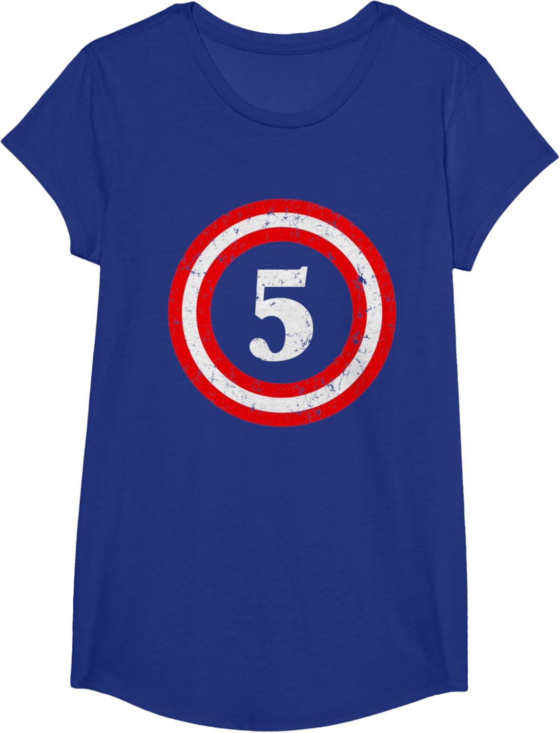 Captain 5 print is a fantastic choice to pull off that 5th Birthday superhero theme celebration. Nice party outfit for five year old boys and girls