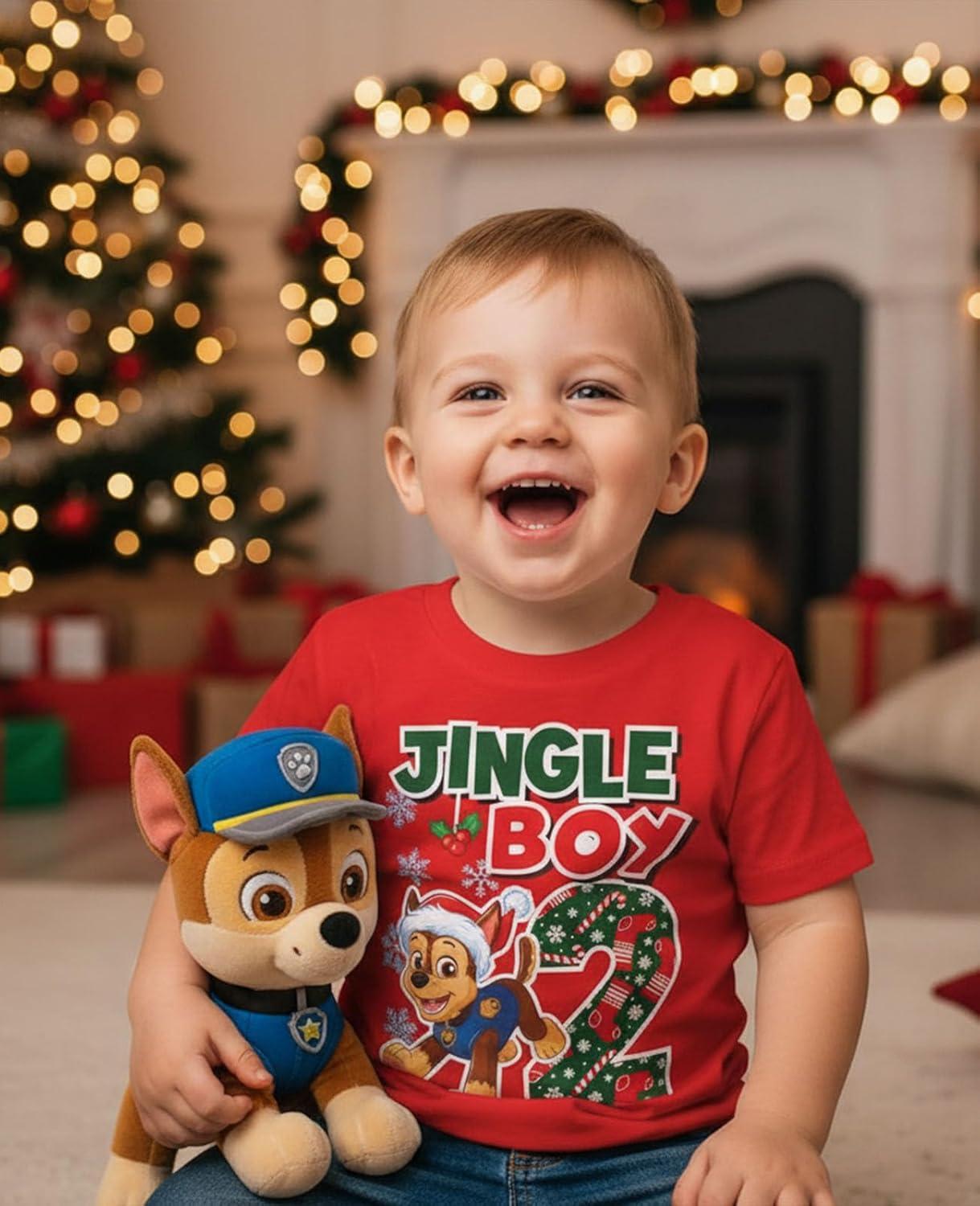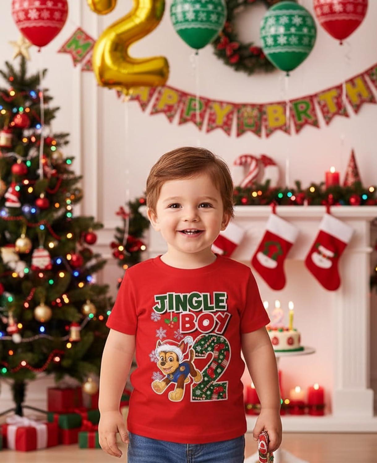 Chase Paw Patrol 2nd Birthday Shirt for Boys – Toddler Party T-Shirt Gift for 2 Year Old(Xmas 2nd / Red)