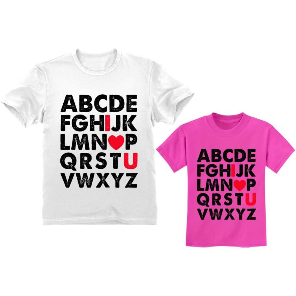 Father & Daugher/Son Matching T-Shirt Valentines Day Alphabet ABC I Love You Kids Pink 3T / Adults White Medium