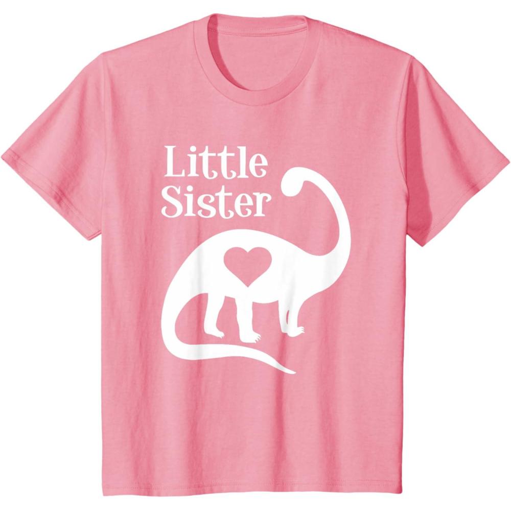Kids Little Sister Gift Siblings Love Dinosaur Girls T-Shirt(Pink)