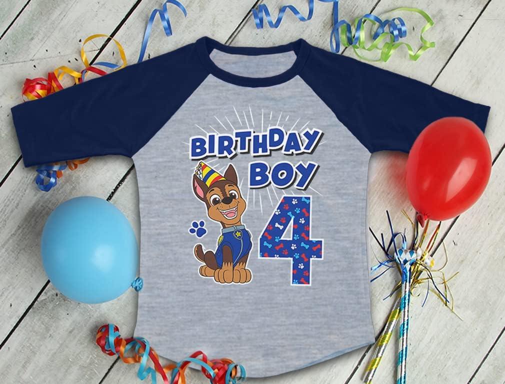 Marshall 4th Birthday Baseball Shirt for Toddler Boys – 3/4 Sleeve Paw Patrol Party Jersey – Gift for 4 Year Old(Chase R 4th / Blue)