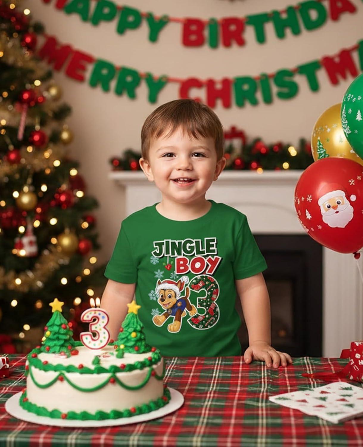 Paw Patrol Chase 3rd Birthday Boy Shirt – Toddler T-Shirt Gift Outfit for Party – Clothes for 3 Year Old Boys(Xmas 3rd / Red)