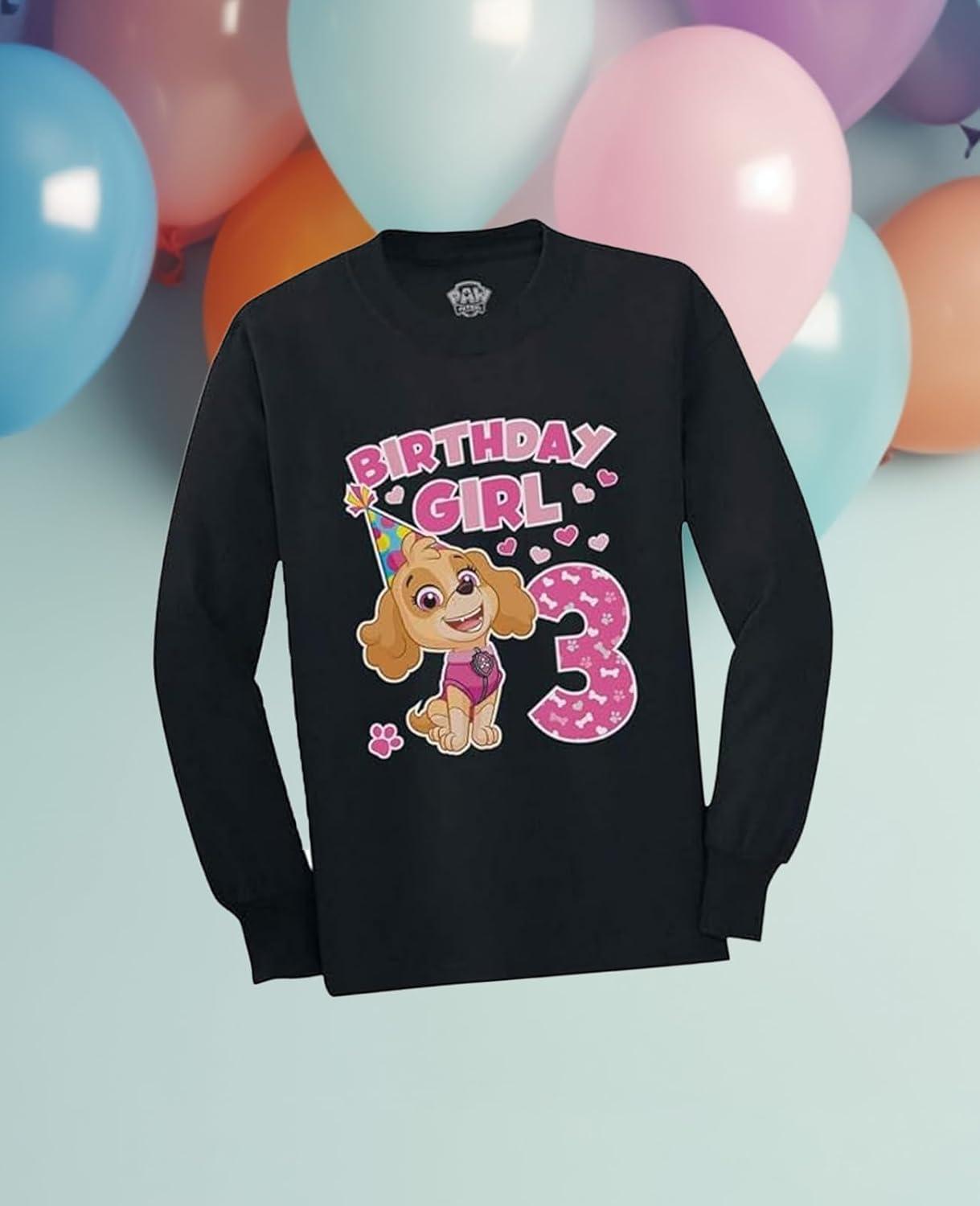 Make her birthday paw-sitively awesome with this Paw Patrol Skye Long Sleeve 3rd Birthday Shirt–a fun and comfy gift for toddler girls turning three! Featuring Skye, the fearless pup in pink, this officially licensed tee is ideal for Paw Patrol-themed parties, photo ops, and everyday play. Crafted from soft, breathable fabric, this shirt keeps your little one comfortable from the first slice of cake to the last party game. The vibrant print is professionally applied in the USA for lasting color and detail, even after many washes. Whether you're shopping for your daughter, granddaughter, or niece, this Skye birthday shirt is an easy win. Let her celebrate her special day in style while showing off her favorite rescue pup–because turning three is an adventure worth flying high for!