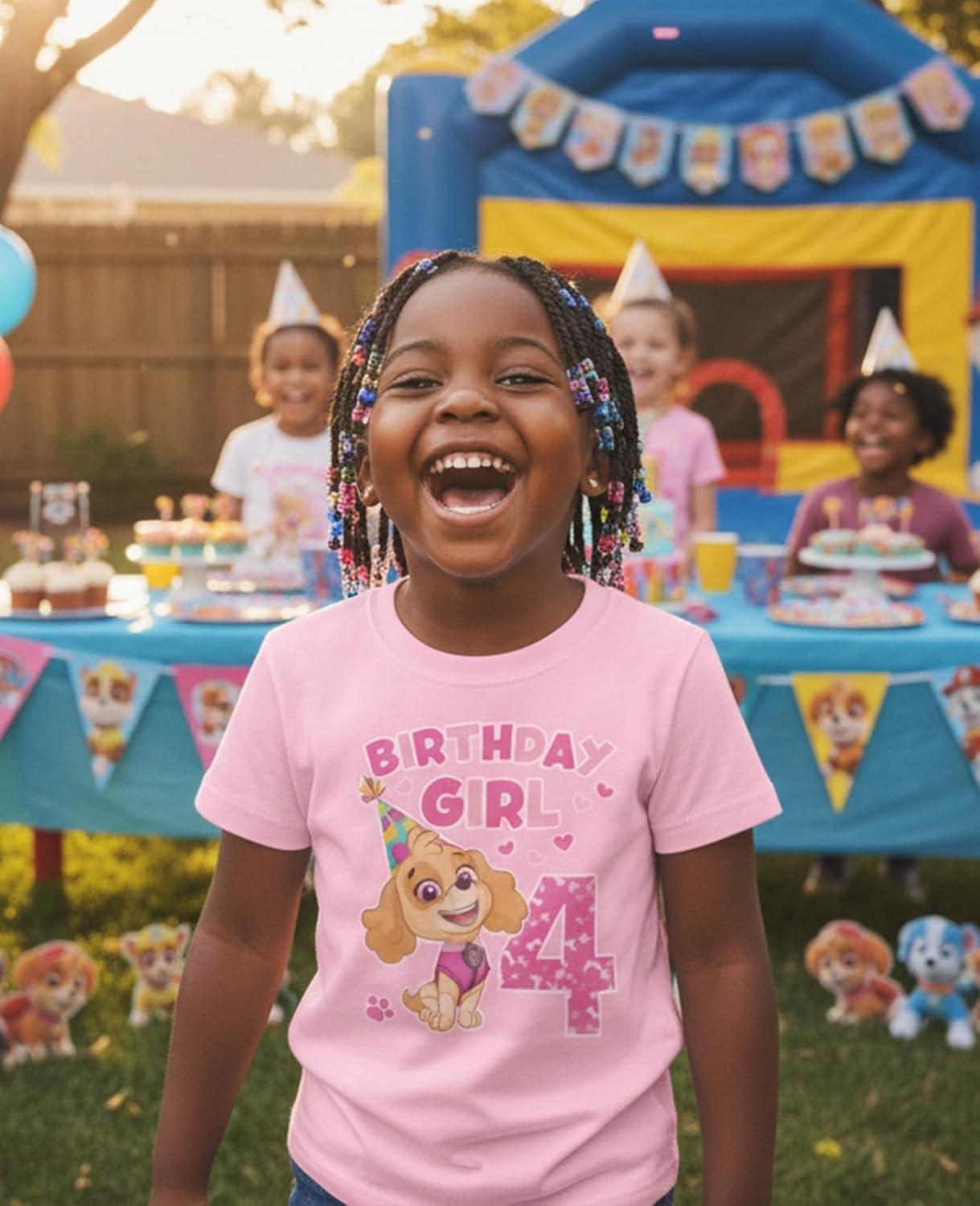 Let your birthday girl soar into her special day with this adorable Skye Paw Patrol Birthday Shirt! Designed for fans of everyone's favorite flying pup, this tee is a perfect choice for 4th birthday parties, preschool celebrations, or any pup-themed adventure. Made from soft, breathable cotton, it's gentle on sensitive skin and comfy enough for all-day birthday fun–from blowing out candles to jumping into party games. The vibrant Skye design pops in photos and holds up wash after wash, making it a favorite long after the party's over. Whether you're shopping for your own little one or surprising a Paw Patrol-loving niece or granddaughter, this shirt makes a thoughtful gift for any 4 year old girl. Easy to pair with tutus, jeans, or leggings, it's an instant birthday outfit that brings smiles and tail wags.