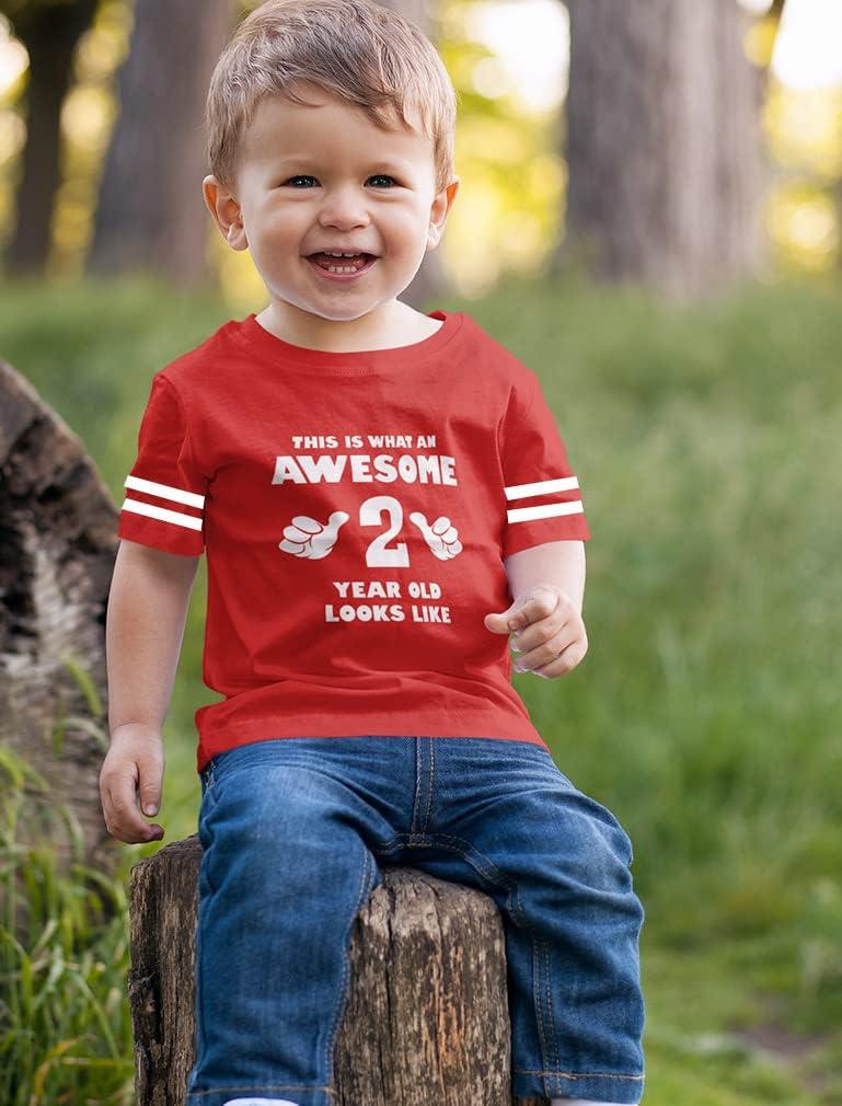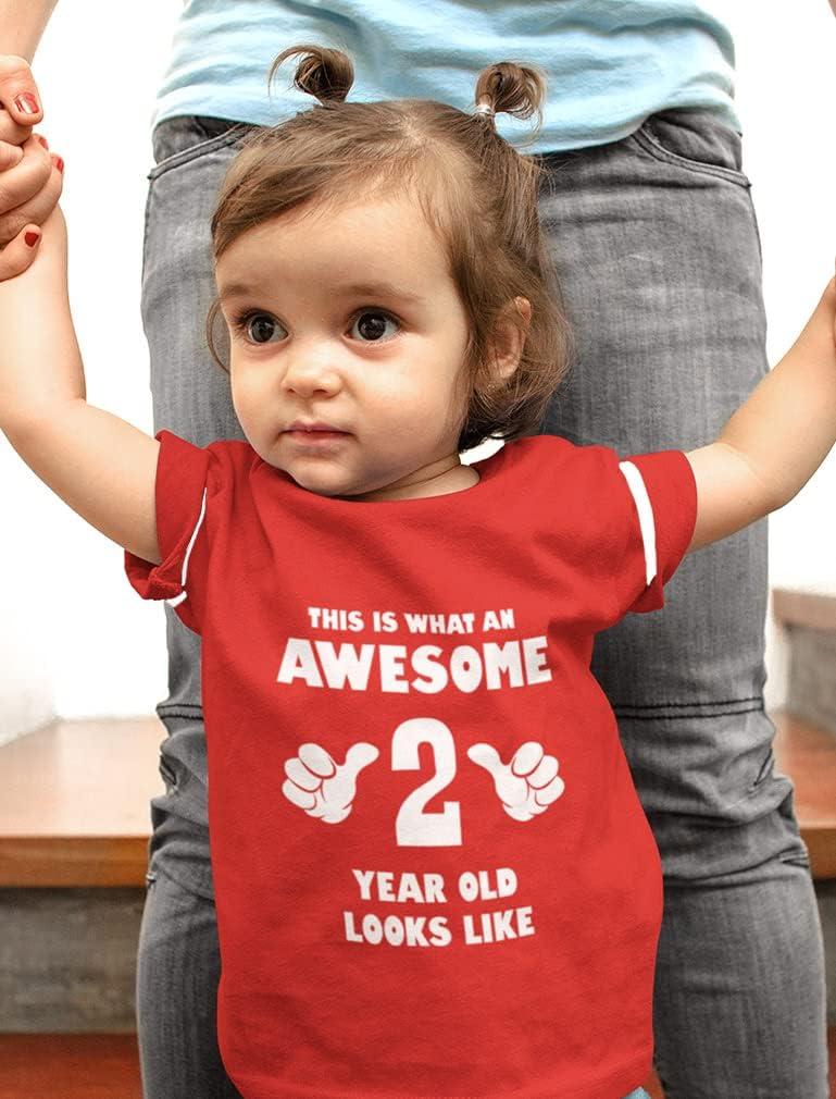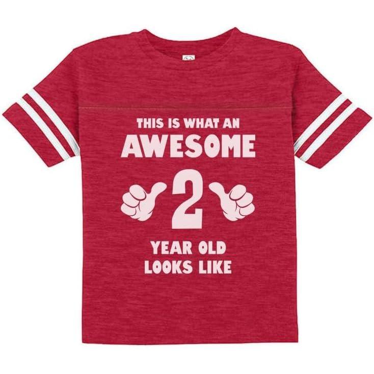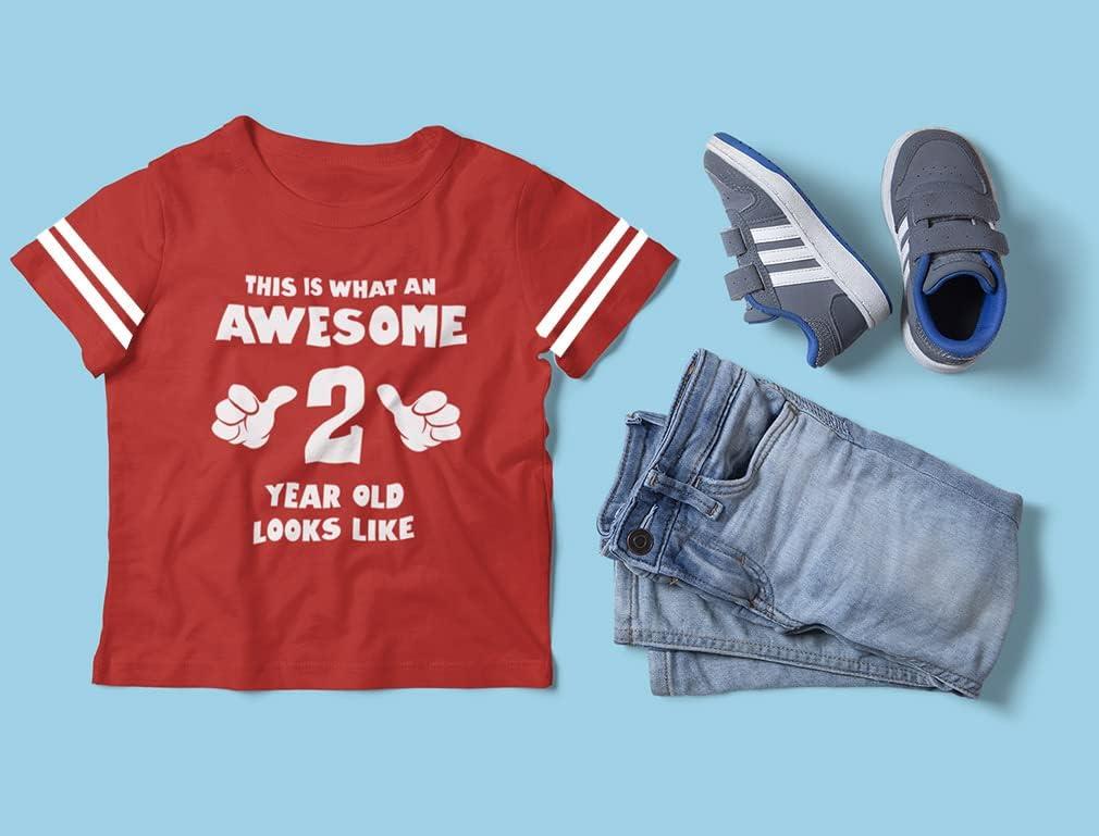 This is What an Awesome 2 Year Old Looks Like Shirt – Funny 2nd Birthday Jersey T-Shirt for Toddler Kids(Red)