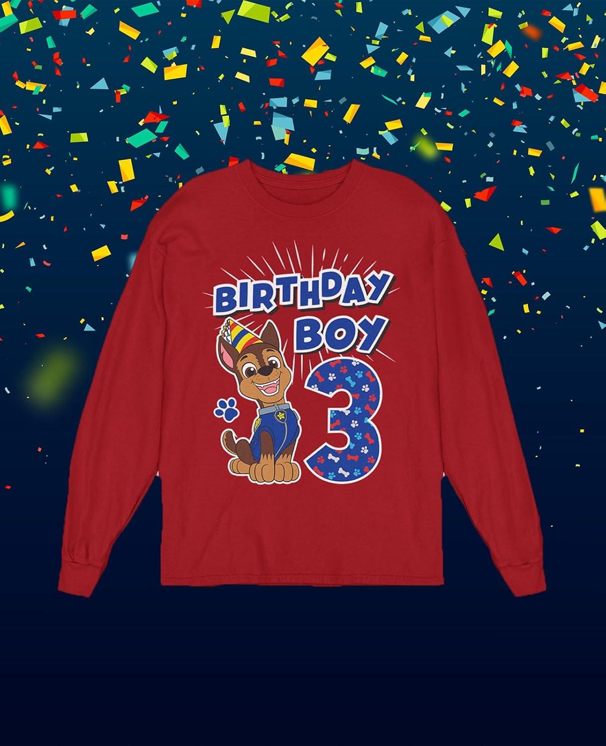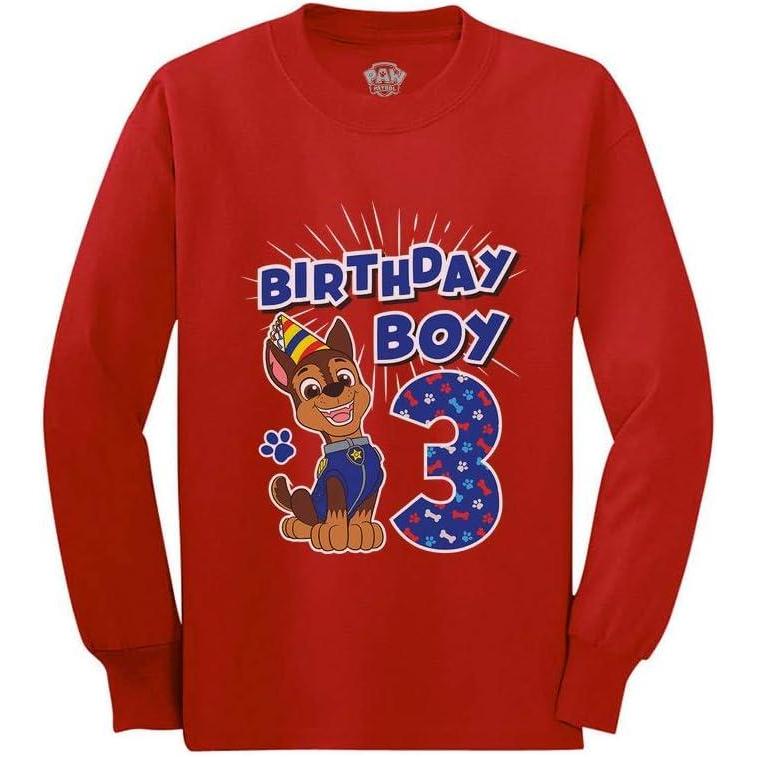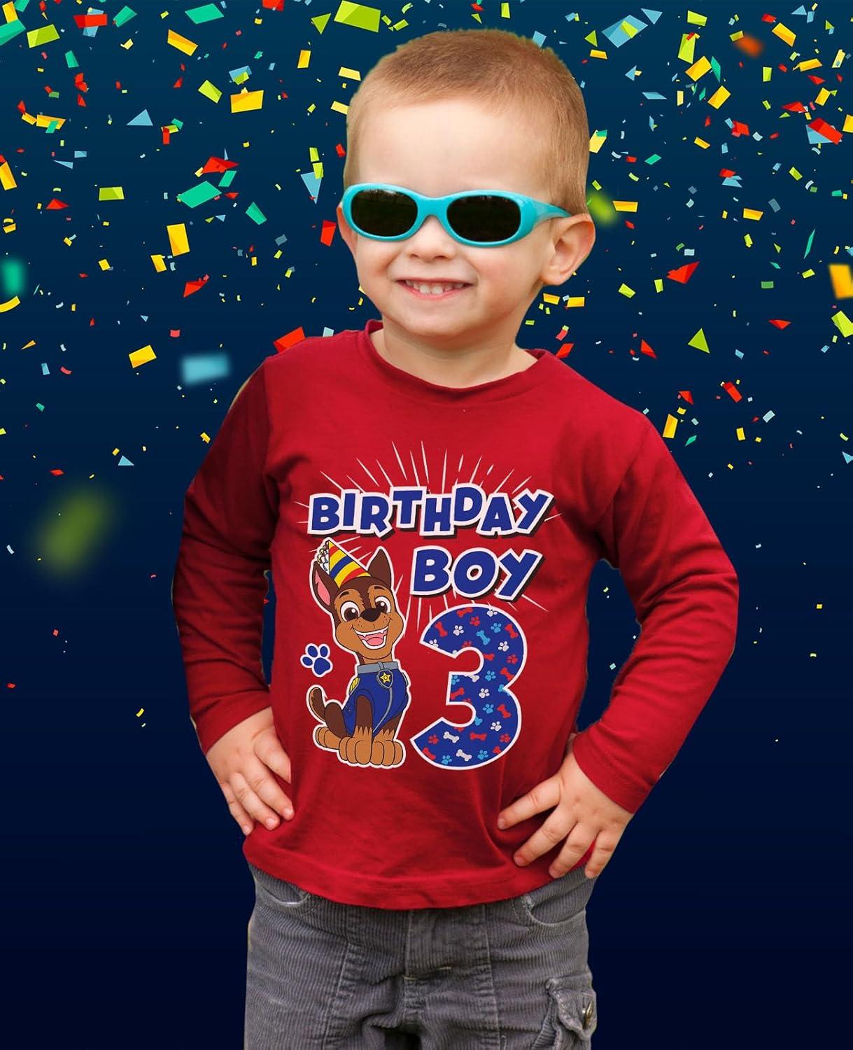 Your little hero will be ready to roll on his big day with this colorful Paw Patrol Chase 3rd Birthday Shirt for boys! Featuring Chase, the brave police pup, this officially licensed Nickelodeon tee is ideal for Paw Patrol-themed birthday parties, cake time, present opening, and every rescue mission in between. Made from soft, breathable fabric, this long sleeve birthday shirt keeps your toddler comfortable while he celebrates in style. The bold, vibrant print is designed to last through countless washes–so it's not just a party outfit, it's a keepsake you'll treasure. Whether you're looking for a fun 3rd birthday gift for your son, grandson, or nephew, or the perfect shirt for a truck-loving, rescue-ready 3-year-old, this Chase tee is an easy win. Let him lead the adventure and make his birthday unforgettable!