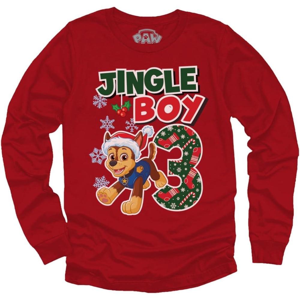 Toddler Boys Paw Patrol Chase 3rd Birthday Long Sleeve Shirt – Gift Tee for 3 Year Old Boys(Xmas L 3rd / Red)
