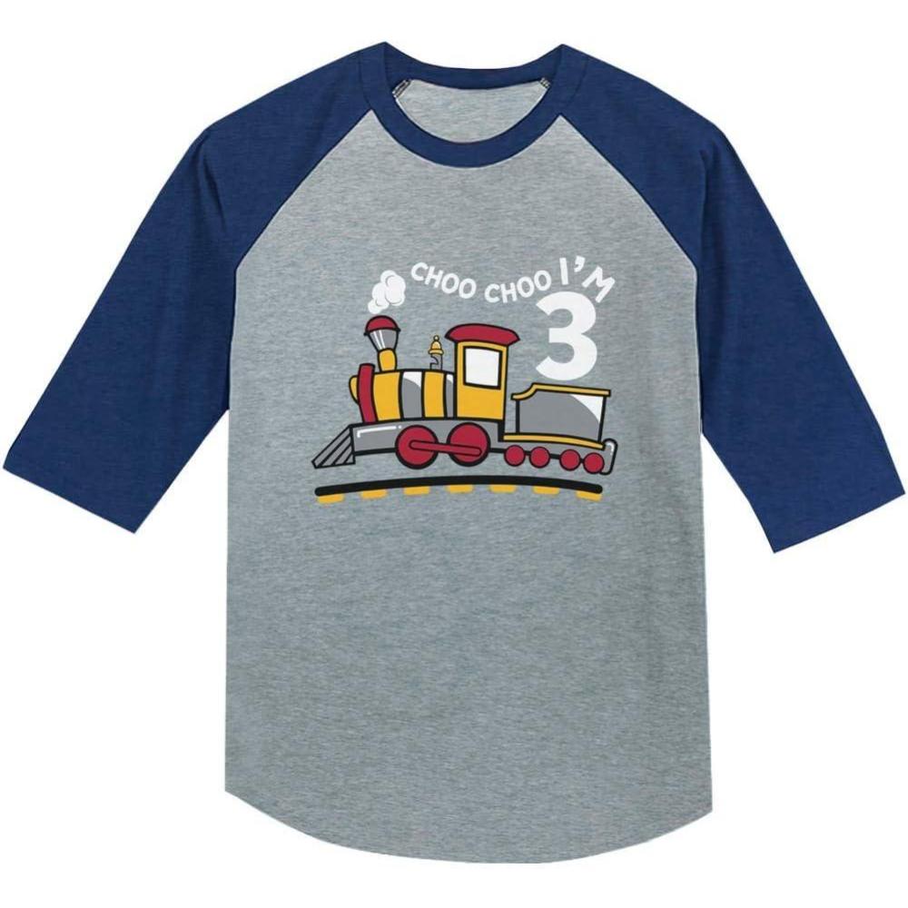 Tstars 3rd Birthday 3 Year Old Boy Choo Train 3/4 Sleeve Baseball Jersey Toddler Shirt(Dark Gray)