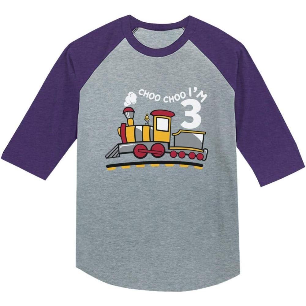 Tstars 3rd Birthday 3 Year Old Boy Choo Train 3/4 Sleeve Baseball Jersey Toddler Shirt(Purple)