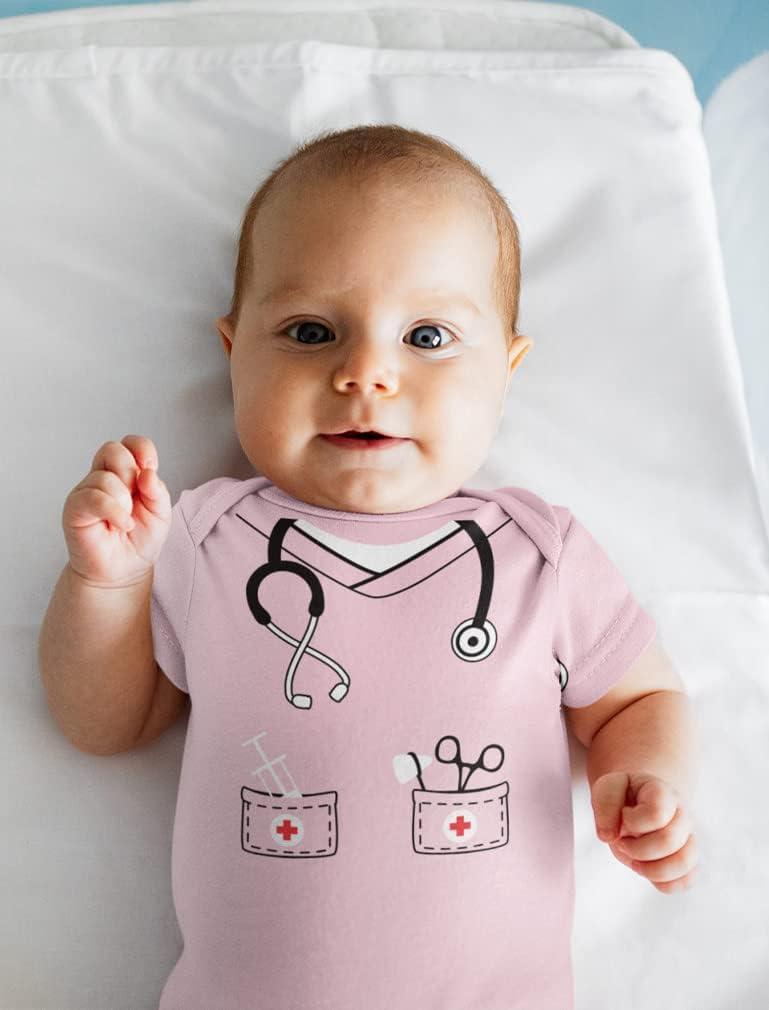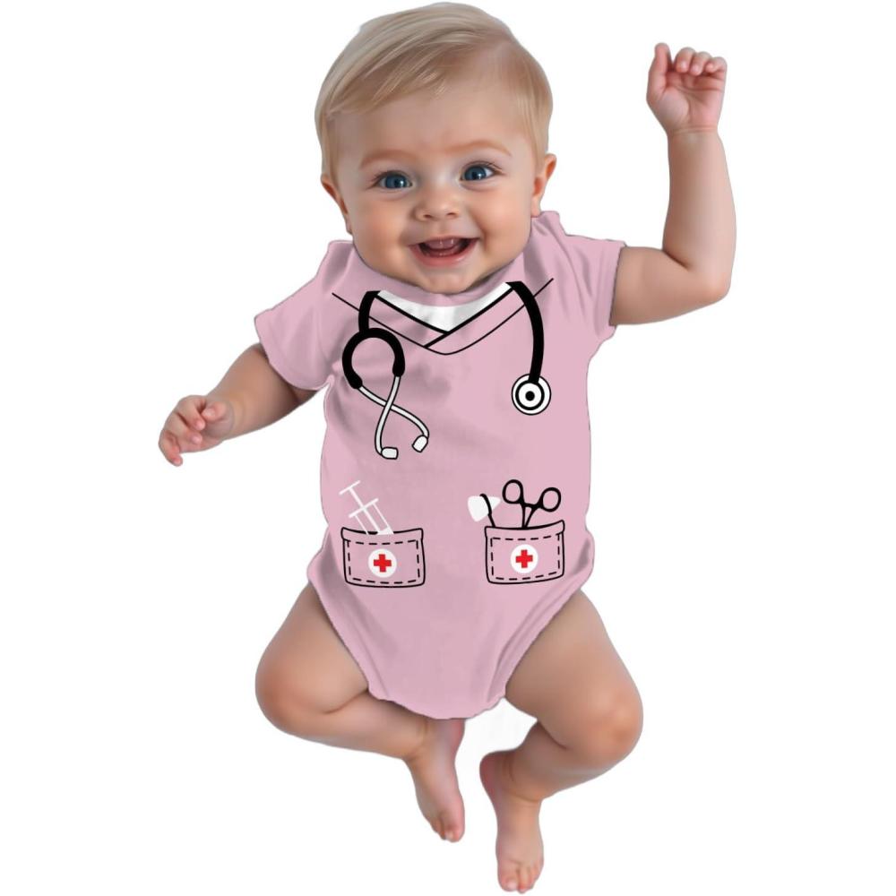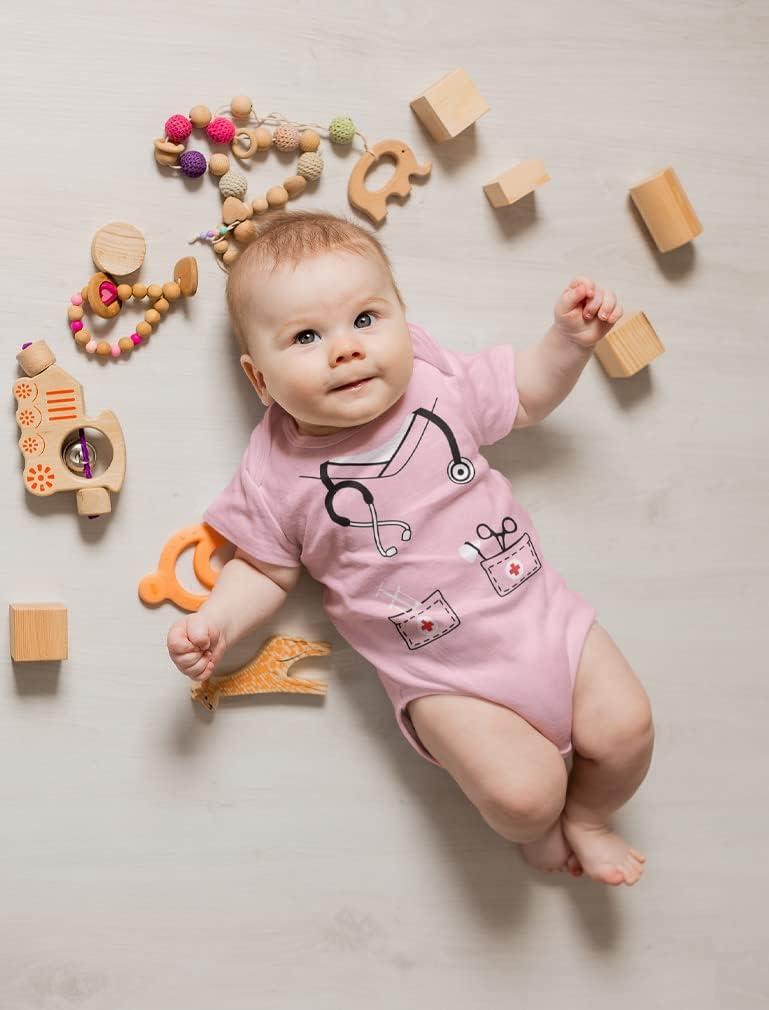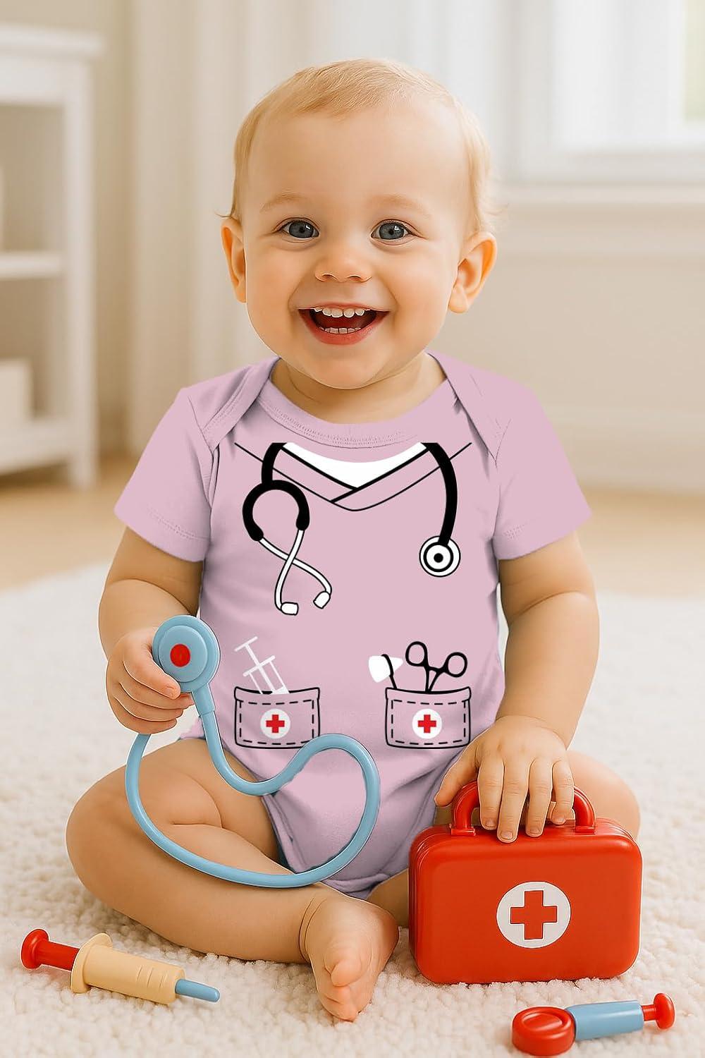 Tstars Baby Doctor or Nurse Bodysuit with Stethoscope – Infant Scrubs Halloween Themed Outfit for Girls and Boys(Pink)