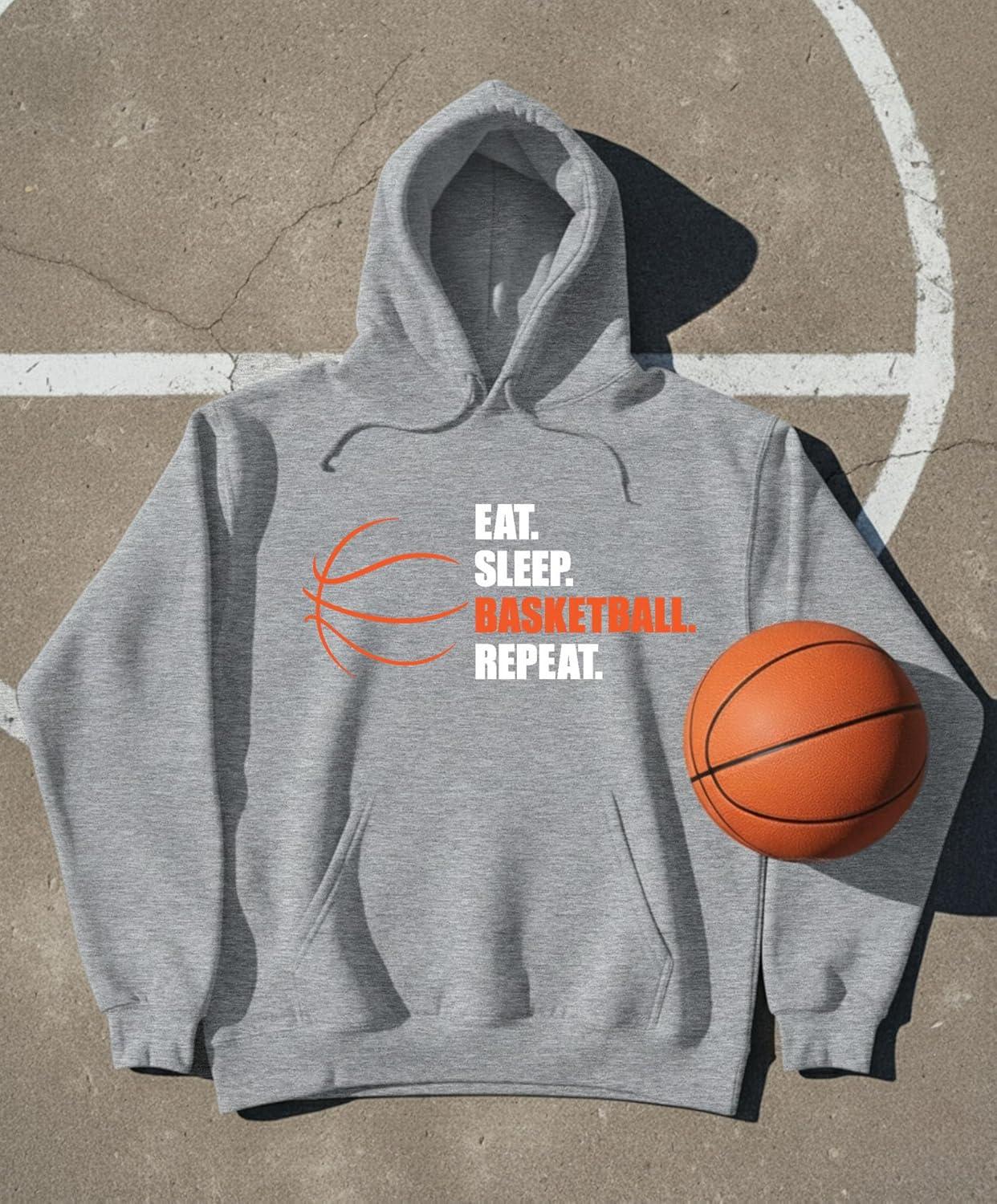 Whether you're coaching from the sidelines, dominating on the court, or cheering from the stands, this hoodie is made for those who live by the rhythm of Eat Sleep Basketball. With a clean basketball-themed graphic, this pullover offers comfort, style, and a clear statement of passion for the game. It's ideal for hoopers, recreational players, gym regulars, and basketball dads. This sports hoodie also fits well into tournament weekends and team travel days. The cotton-blend fabric gives it a warm yet breathable feel, making it ideal for practice, workouts, or relaxing after a game. The drawstring hood and front pocket add functional elements that work for everyday wear. This athletic hoodie pairs well with joggers, jeans, or warmup pants for a sport-ready outfit. It's designed for movement and recovery alike. It's a versatile gift idea for basketball players, coaches, or fans. Whether you're shopping for a teammate, your favorite coach, or a dedicated basketball dad, this hoodie delivers both meaning and wearability for any hoop enthusiast. It's also a favorite choice for tournaments, team events, or post-practice downtime. This mens basketball sweatshirt is a must-have addition to any athlete's off-court rotation.