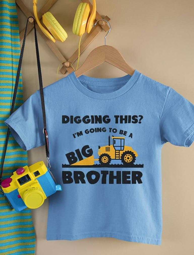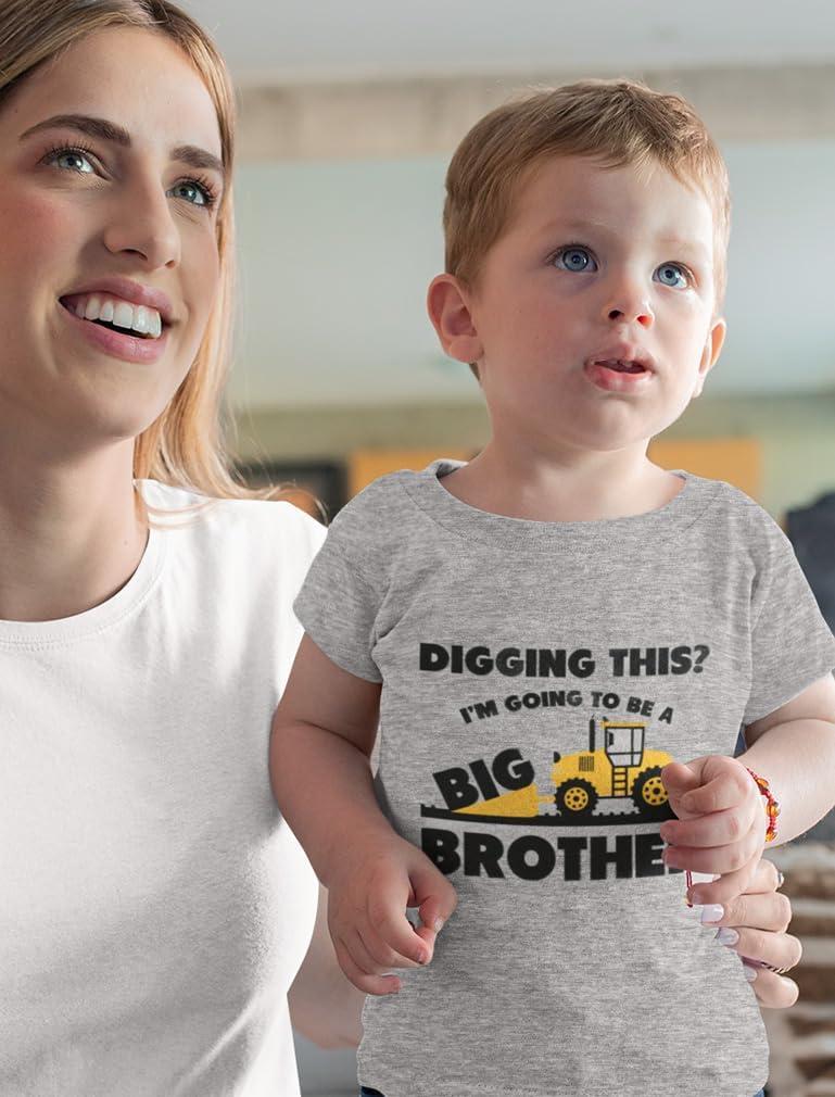 Tstars Big Brother Construction Shirt for Toddler Boys – Pregnancy Announcement Gift – Sibling Reveal T-Shirt(Digging / Gray)