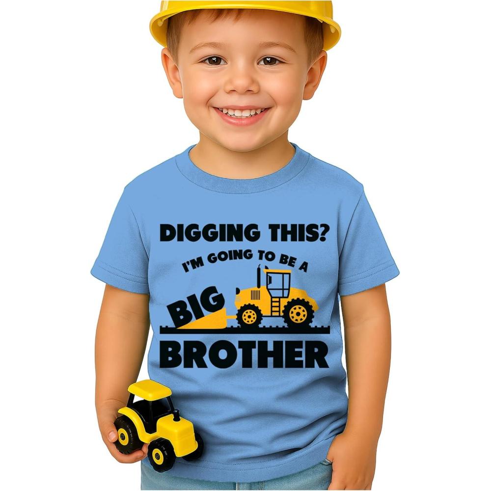 Tstars Big Brother Construction Shirt for Toddler Boys – Pregnancy Announcement Gift – Sibling Reveal T-Shirt(Digging / California Blue)