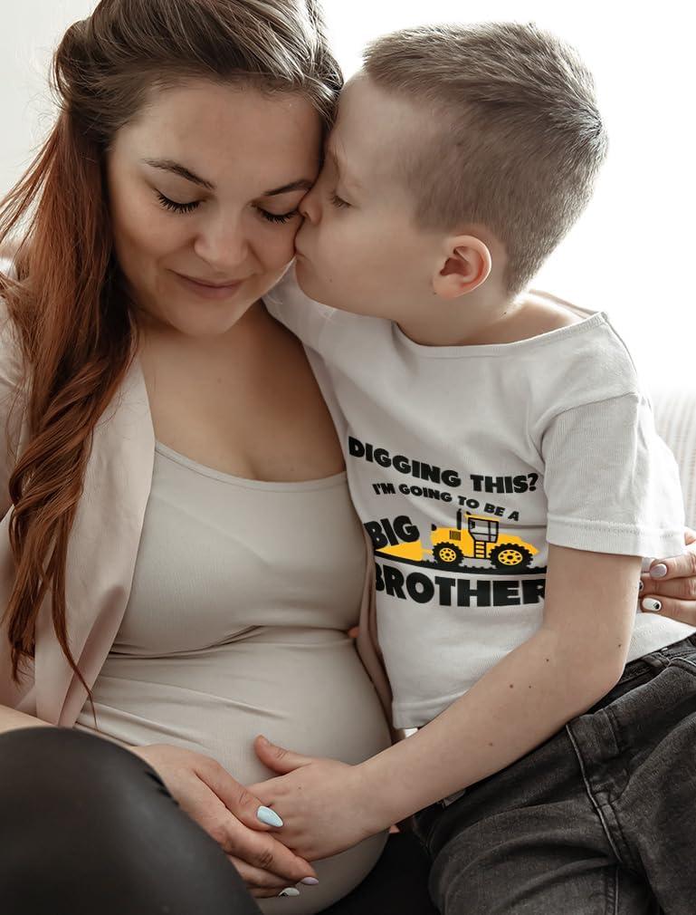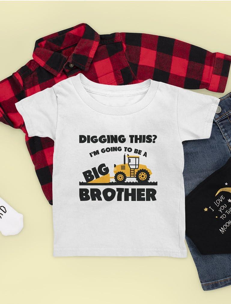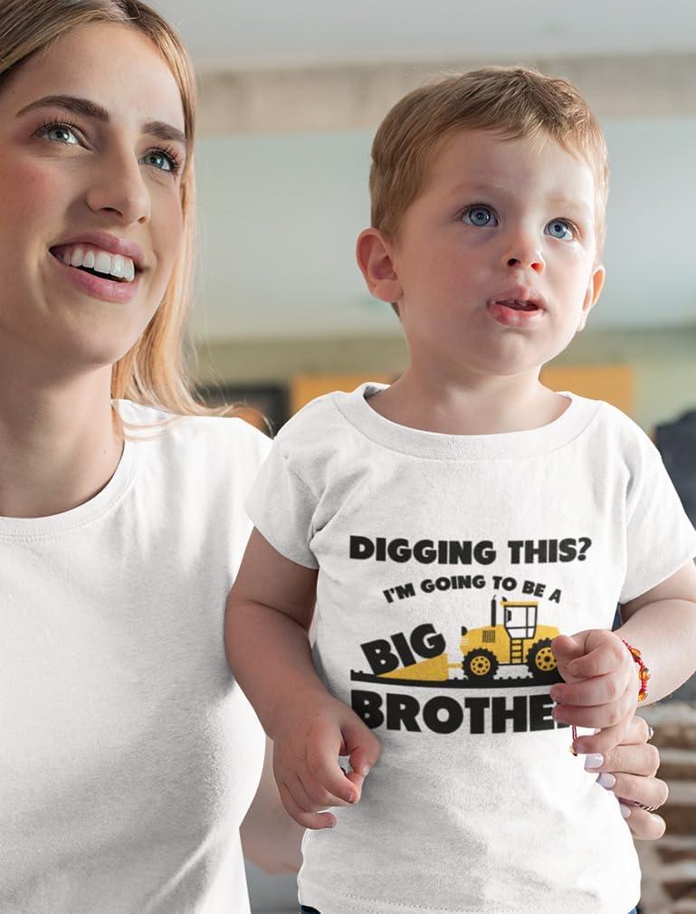 Tstars Big Brother Construction Shirt for Toddler Boys – Pregnancy Announcement Gift – Sibling Reveal T-Shirt(Digging / White)