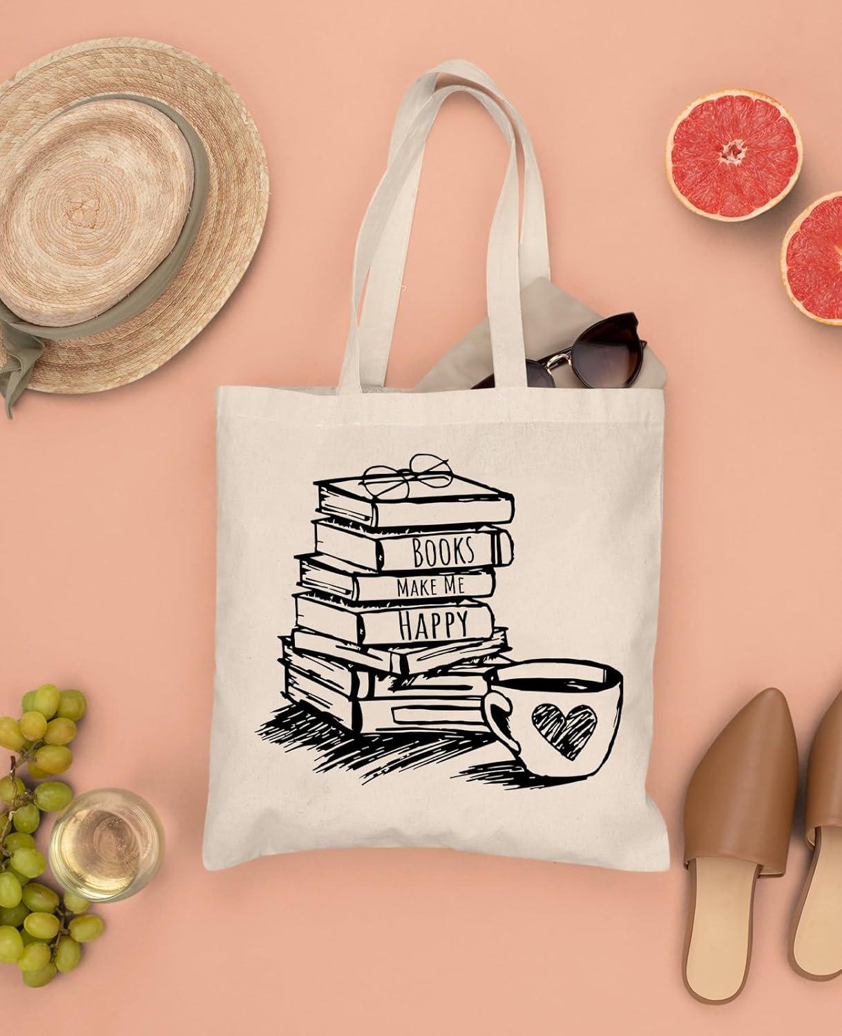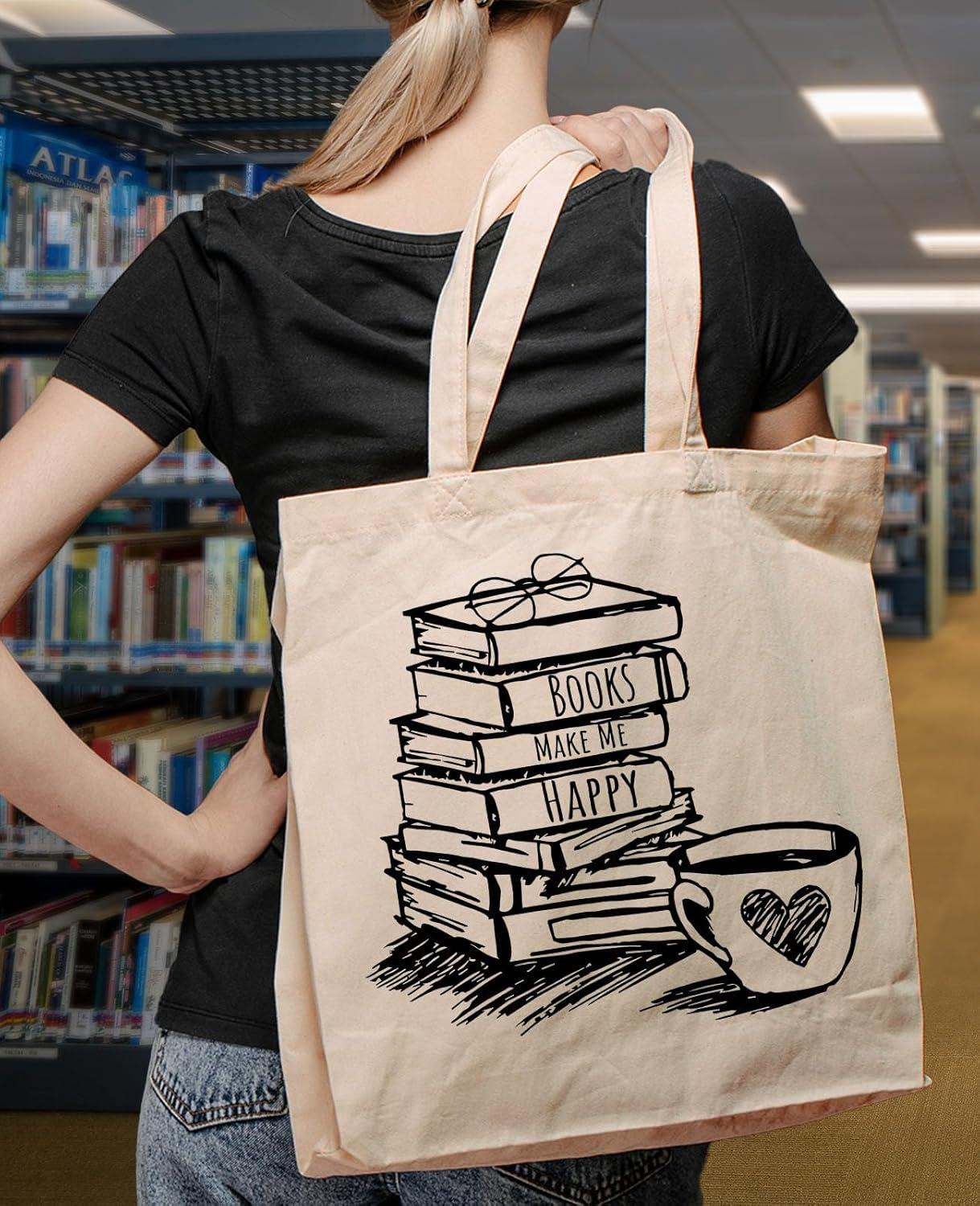 Tstars Canvas Tote Bag for Women Basketball Lovers Reusable Bag for Shopping Tote Bag(Books / Natural)