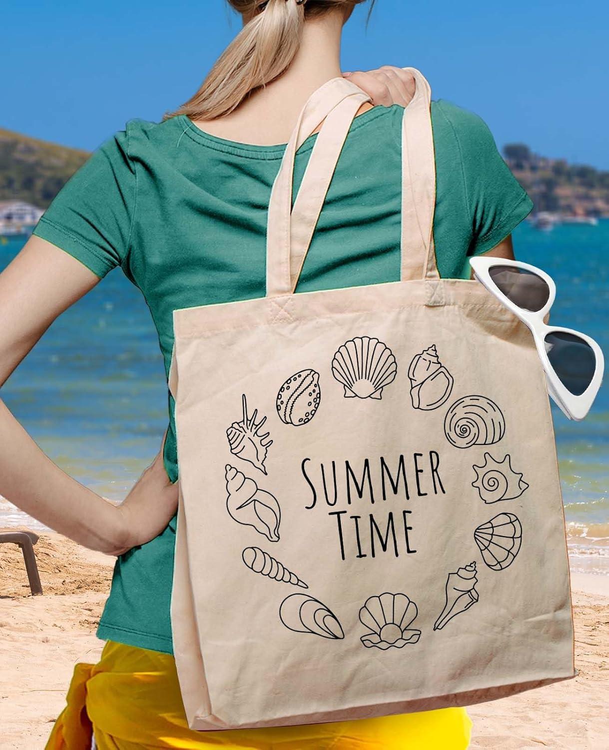 Tstars Canvas Tote Bag for Women Basketball Lovers Reusable Bag for Shopping Tote Bag(Summer Time / Natural)