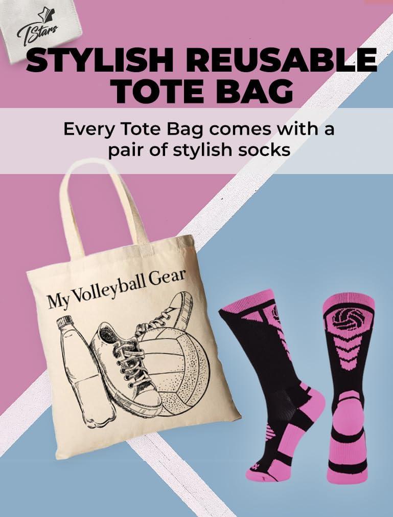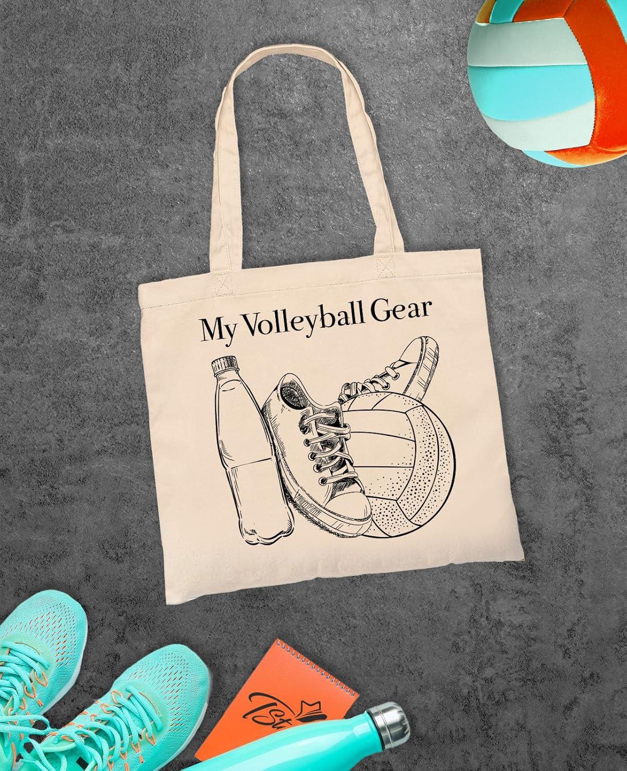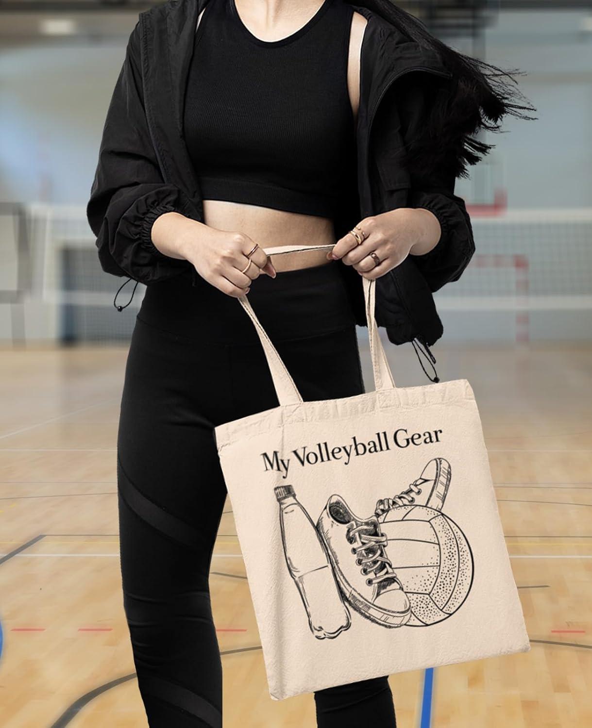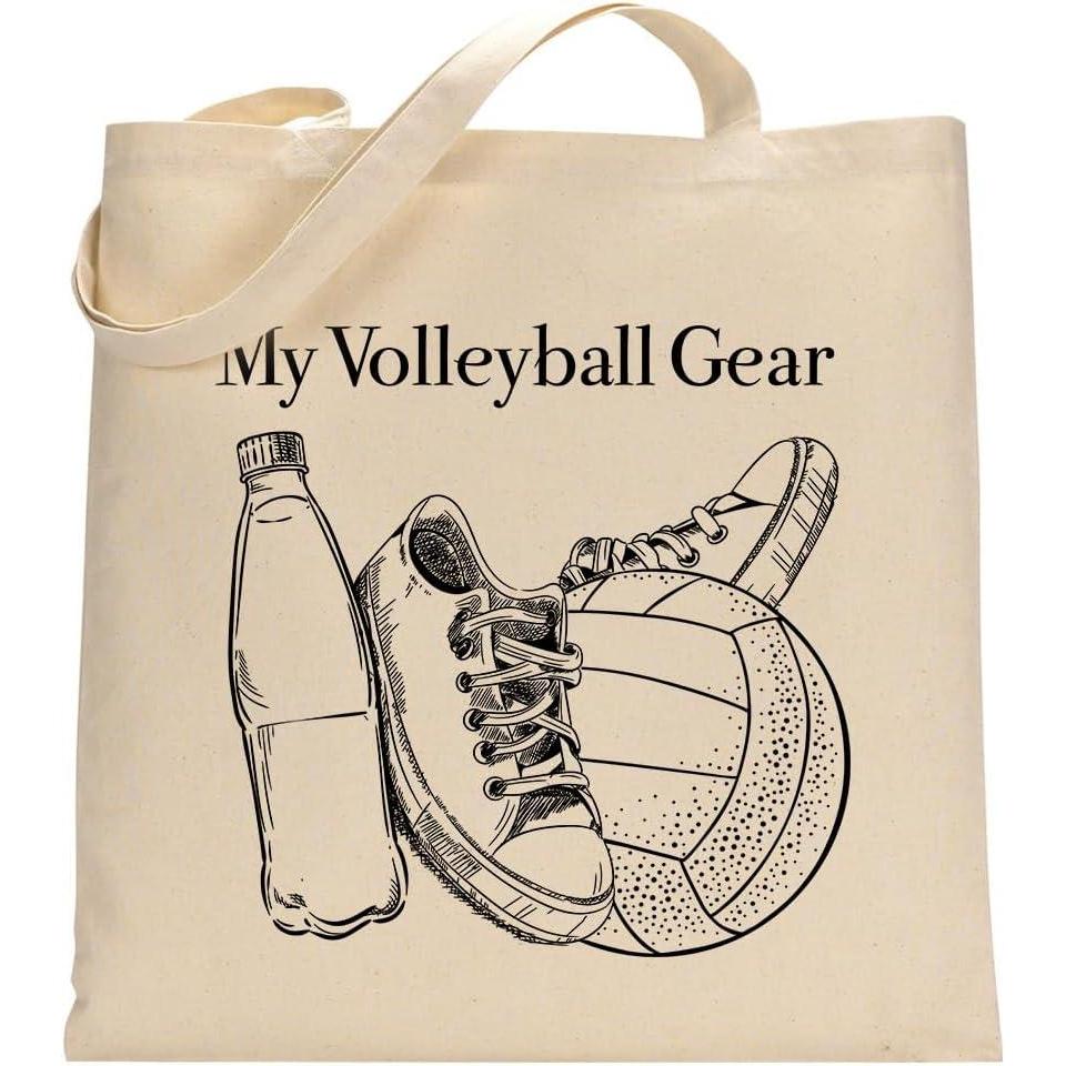 Tstars Canvas Tote Bag for Women Basketball Lovers Reusable Bag for Shopping Tote Bag(Volleyball Gear / Natural)