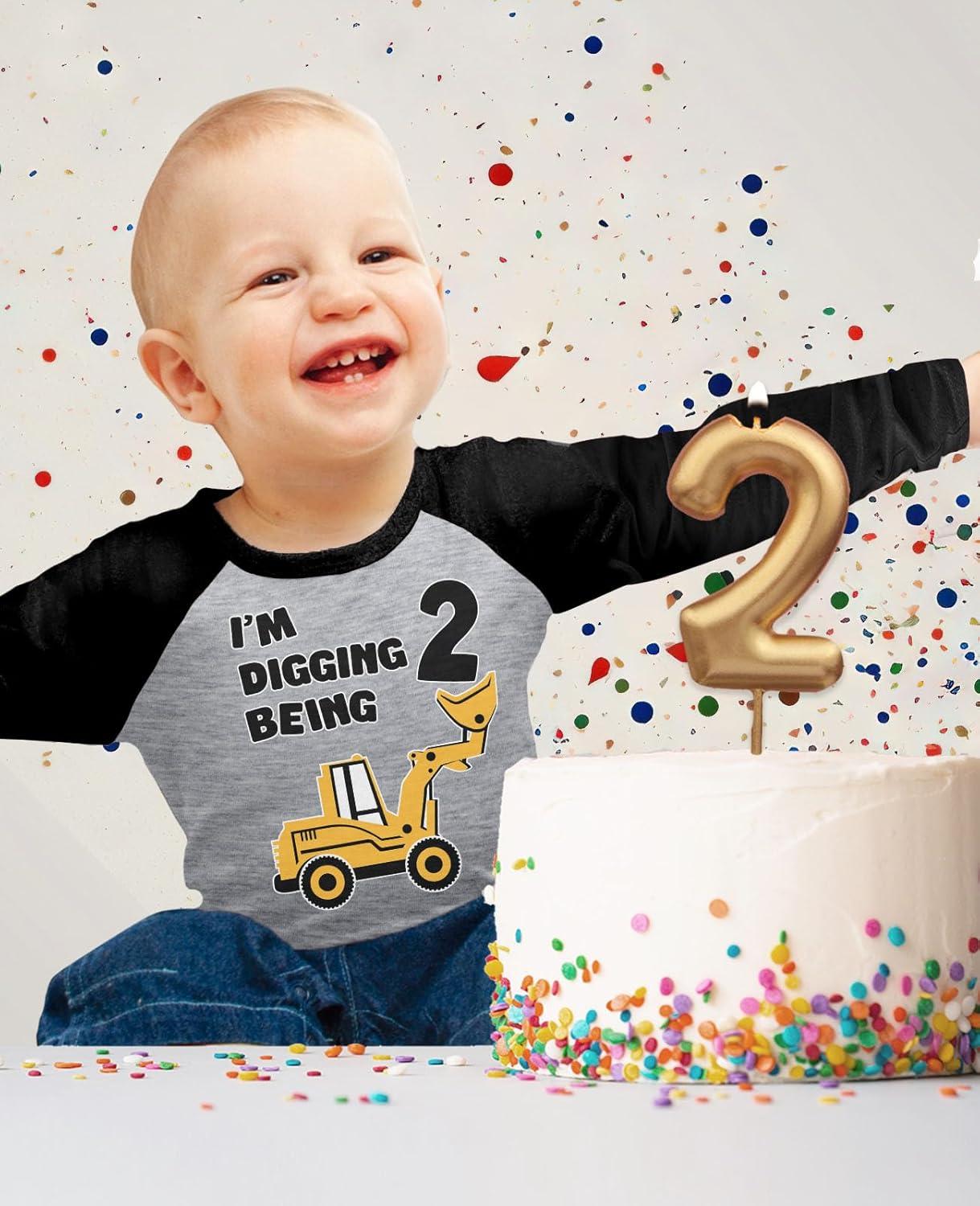 Tstars Construction 2nd Birthday Outfit for Toddler Boys – I’m Digging Being 2 Shirt – Bulldozer Digger Truck Tee(3/4 Sleeve – Red)