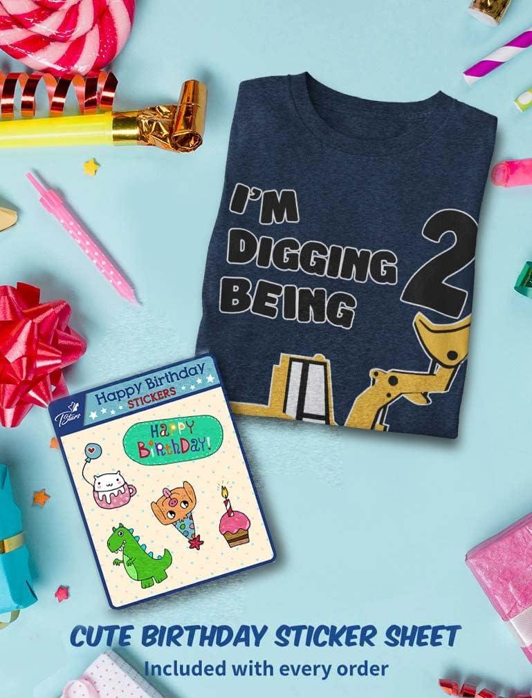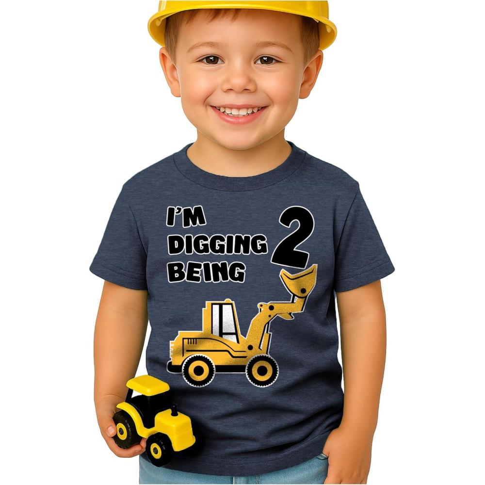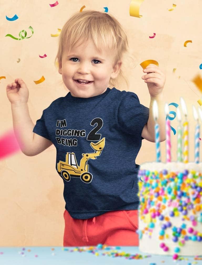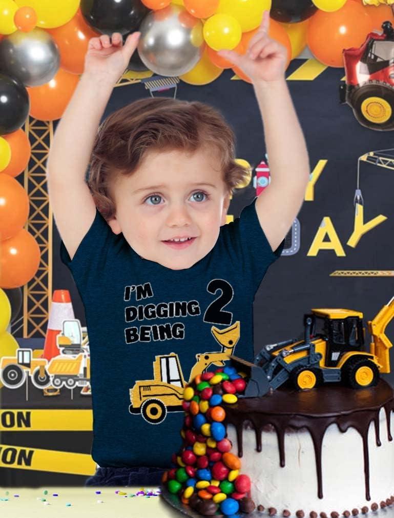 Tstars Construction 2nd Birthday Outfit for Toddler Boys – I’m Digging Being 2 Shirt – Bulldozer Digger Truck Tee(3/4 Sleeve – Blue)