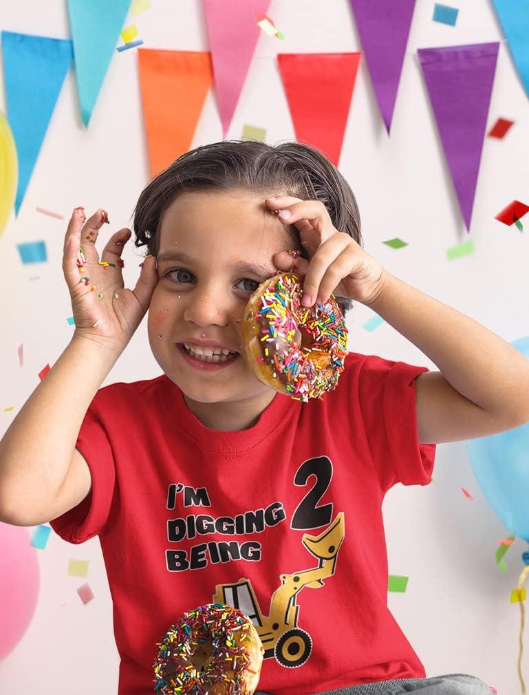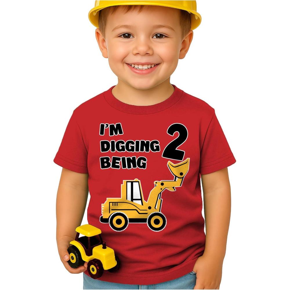 Tstars Construction 2nd Birthday Outfit for Toddler Boys – I’m Digging Being 2 Shirt – Bulldozer Digger Truck Tee(3/4 Sleeve – Dark Gray)
