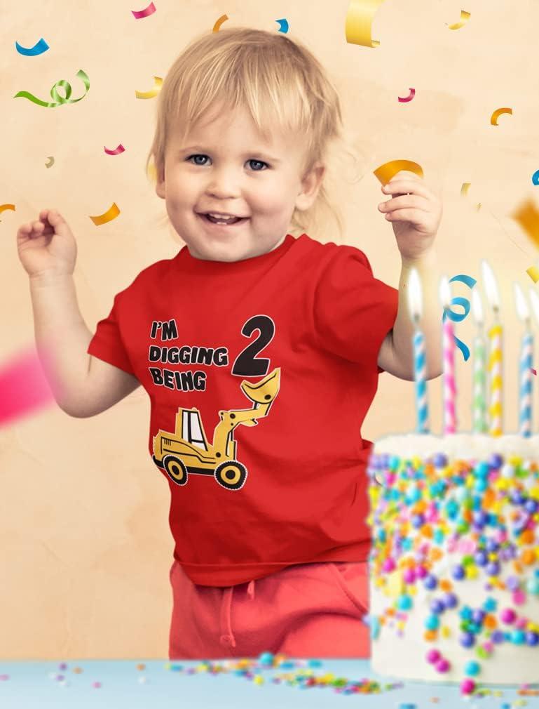 Tstars Construction 2nd Birthday Outfit for Toddler Boys – I’m Digging Being 2 Shirt – Bulldozer Digger Truck Tee(Navy)