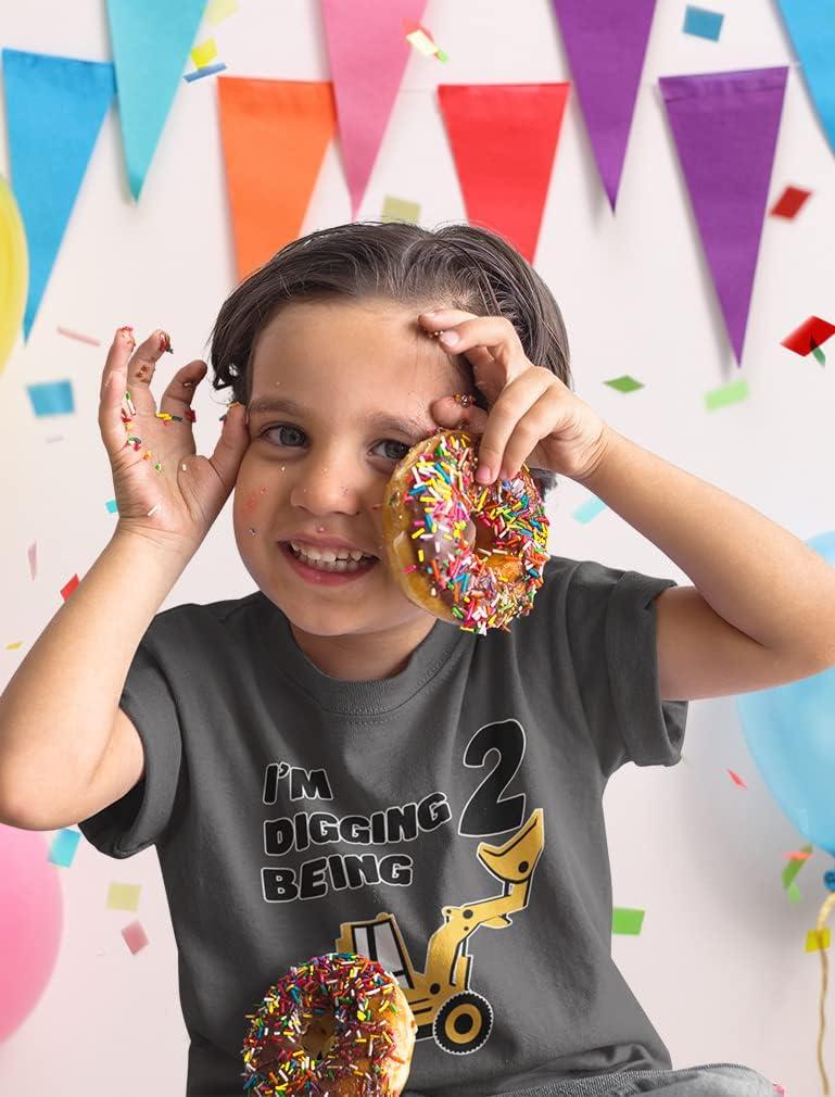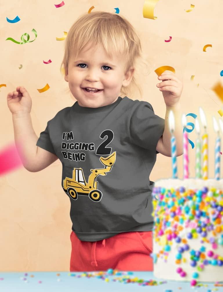 Tstars Construction 2nd Birthday Outfit for Toddler Boys – I’m Digging Being 2 Shirt – Bulldozer Digger Truck Tee(3/4 Sleeve – Red)