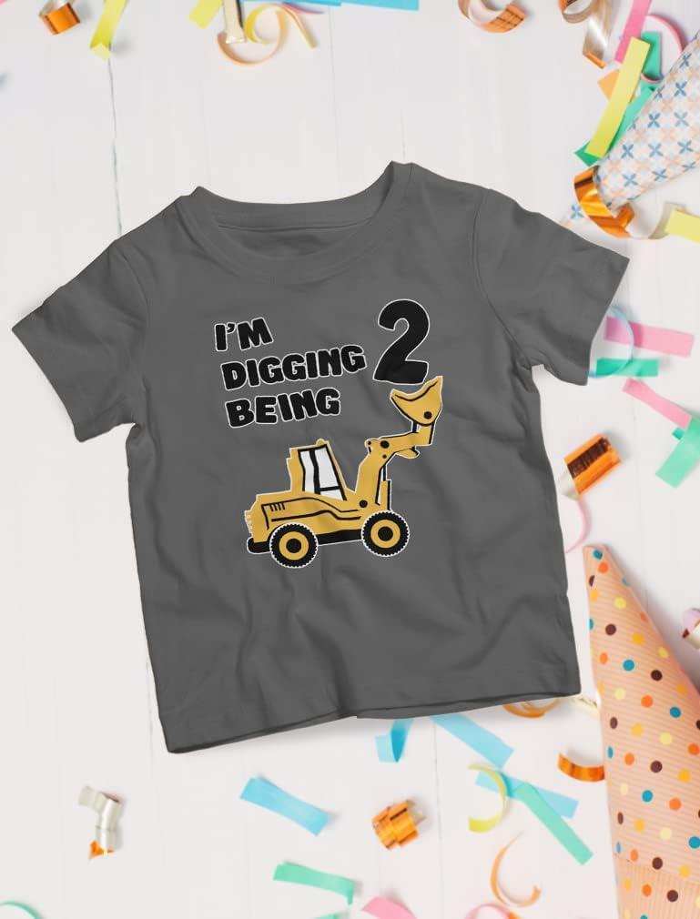 imageTstars Construction 2nd Birthday Outfit for Toddler Boys  Im Digging Being 2 Shirt  Bulldozer Digger Truck Tee34 Sleeve  Red