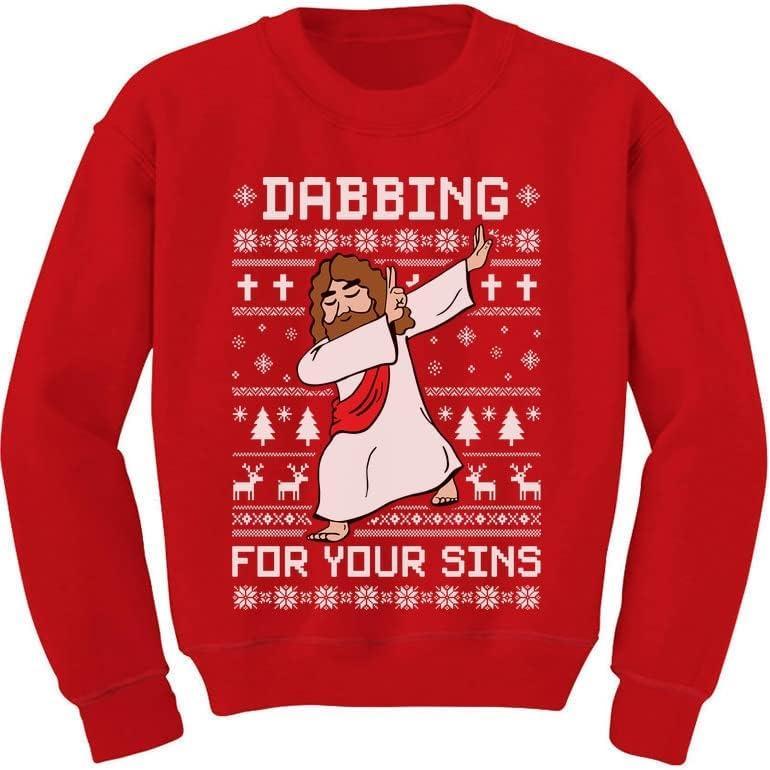 Tstars Dabbing Jesus Ugly Christmas Sweater Funny Dab Dance Youth Kids Sweatshirt(Red)