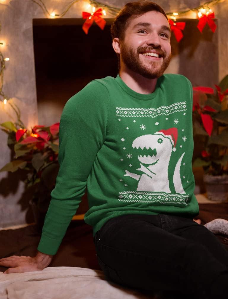 Tstars Due to Inflation This is My Ugly Christmas Sweater Shirt Tshirt T-Shirt(Dino / Green)