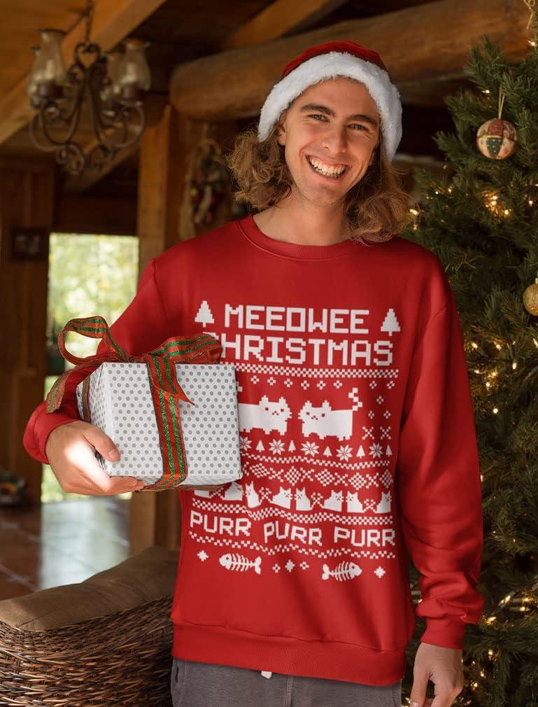 Tstars Due to Inflation This is My Ugly Christmas Sweater Shirt Tshirt T-Shirt(Meowee / Red)