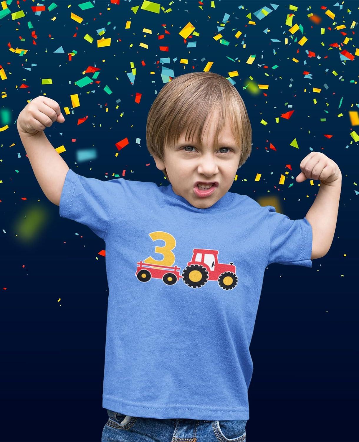 Tstars Farm Tractor 2nd 3rd Birthday Shirt for Toddler Boys or Girls – Gift Tee for 2 3 Year Old – Kids Bday Party Outfit(Tractor 3rd / Navy)