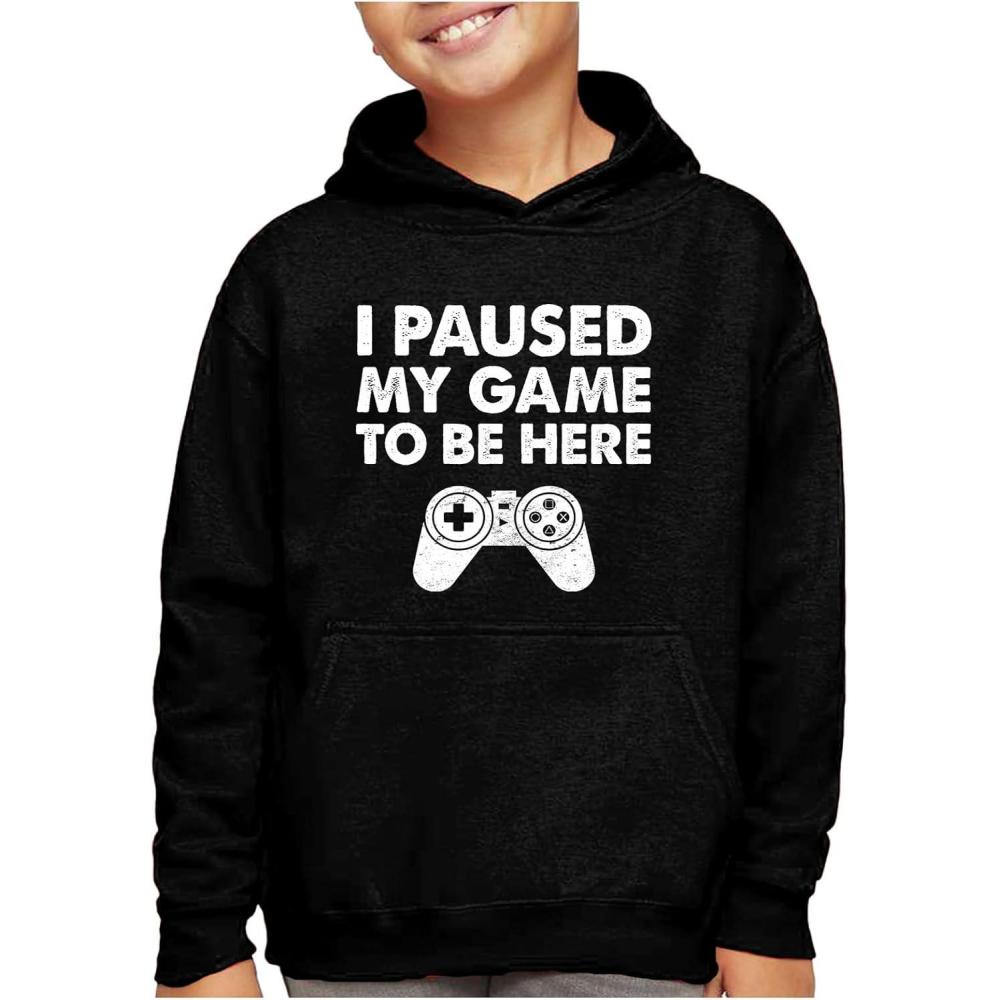 Tstars Funny Kids Gaming Apparel Hoodie Gifts for Gamers I Paused My Game to Be Here Hoodies(Youth / Black)