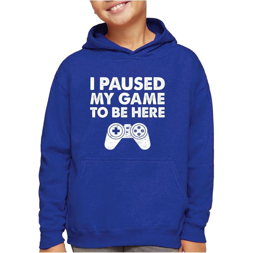 Tstars Funny Kids Gaming Apparel Hoodie Gifts for Gamers I Paused My Game to Be Here Hoodies(Youth / Blue)