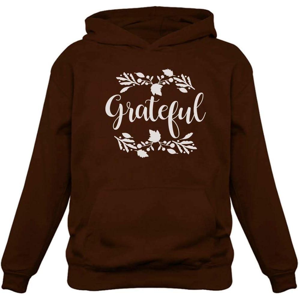 Tstars Grateful Sweatshirt Fall Top Cute Thanksgiving Women Hoodie(Brown)