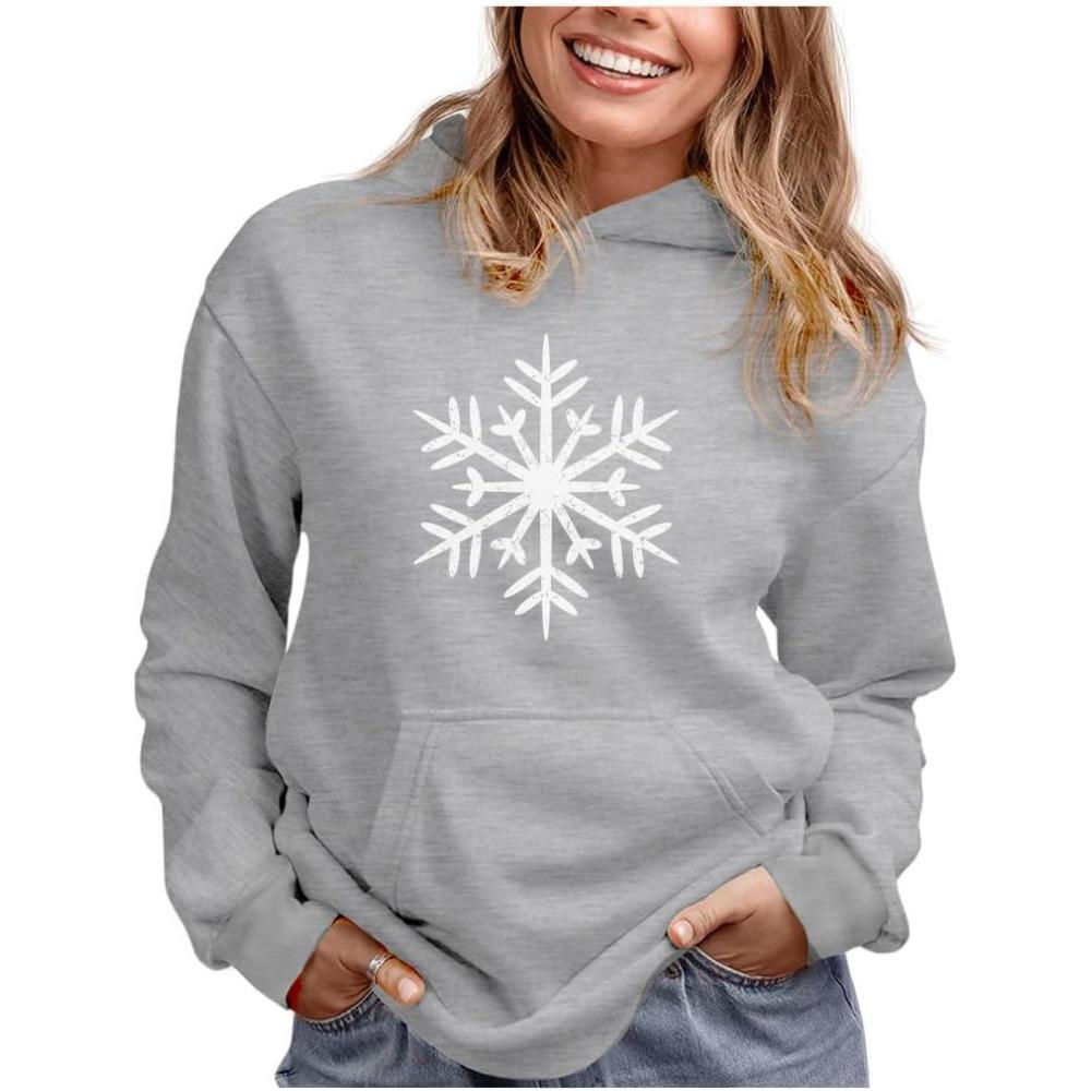 Tstars Holiday Snowflake Hoodie for Women – Festive Christmas Pullover Sweatshirt for Teen Girls & Winter Outfits(Snowflake / Gray)