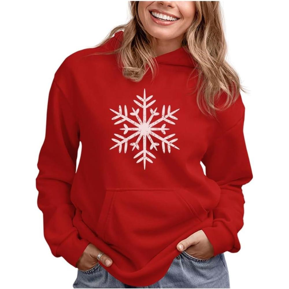 Celebrate the coziest season in style with this snowflake hoodie–a cheerful and comfortable choice for anyone who loves the holidays. Whether you're headed to a Christmas party, sipping cocoa by the fireplace, or running errands in the cold, this hoodie adds just the right touch of seasonal spirit. Designed with a relaxed fit and soft cotton-blend fabric, it's ideal for layering over tees or under coats. The festive snowflake graphic offers a bold seasonal look without overdoing it–making it versatile enough for December and beyond. Whether shopping for yourself or choosing a thoughtful present, this womens red snowflake sweater makes a memorable gift for teen girls, moms, daughters, or friends who adore holiday-themed fashion. Ideal for matching holiday photos or cozy nights in. Crafted in the USA with durability in mind, this hoodie holds up wash after wash while keeping its charm. A go-to winter staple for making the holidays feel even warmer.