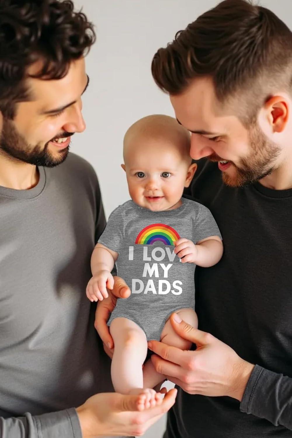 Tstars I Love My Dads Pride Baby Outfit | Gift for Gay LGBT Parents – LGBTQ+ Rainbow Infant Bodysuit(Dads / Gray)
