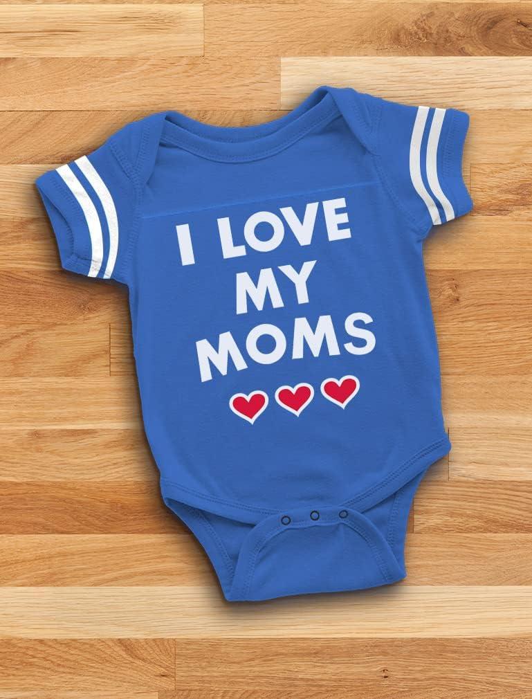 Tstars I Love My Dads Pride Baby Outfit | Gift for Gay LGBT Parents – LGBTQ+ Rainbow Infant Bodysuit(Moms / Blue)