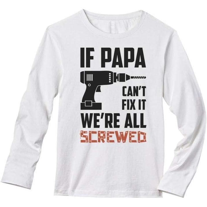 Tstars If PAPA Can’t Fix It We’re All Screwed Gift for Grandfather Long Sleeve T-Shirt(White)