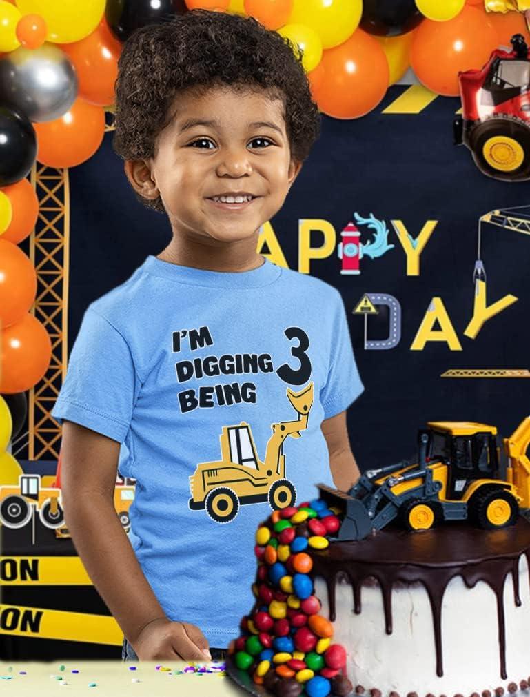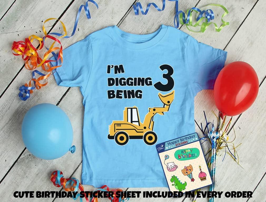 Tstars I’m Digging Being 3 Shirt – 3rd Birthday Outfit with Digger Truck – Construction Tee for Toddler Boys(California Blue)