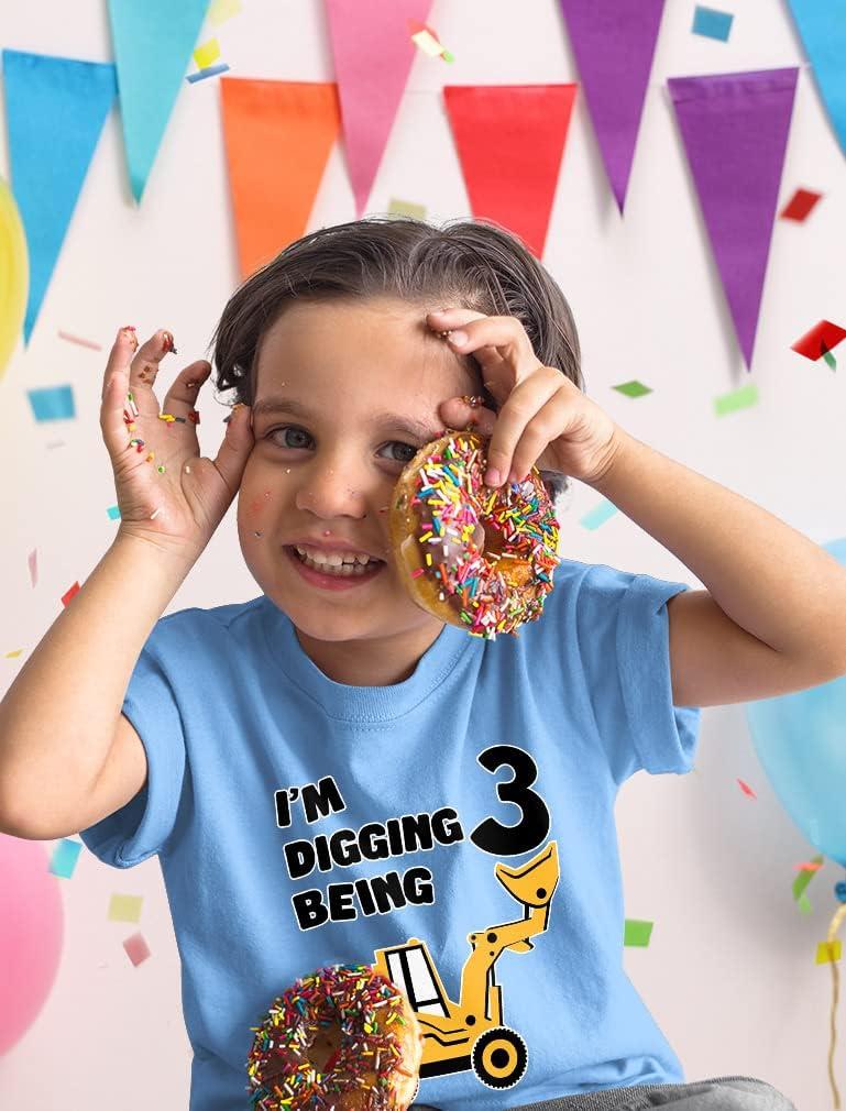 Tstars I’m Digging Being 3 Shirt – 3rd Birthday Outfit with Digger Truck – Construction Tee for Toddler Boys(Gray)