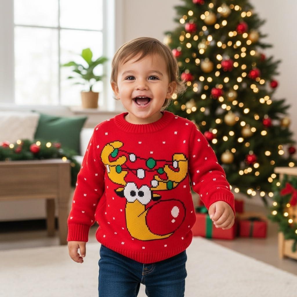 Tstars Kids Ugly Christmas Sweater – Dino, Gamer, Merry Swishmas – Funny Holiday Top for Boys & Girls, Ugly Xmas Party Gift(Reindeer / Multicolor)
