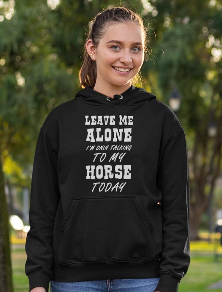 Tstars Leave Me Alone I’m Only Talking to My Horse Hoodie Teen Girls & Women Gift for Riders and Equestrian Fans(Black)