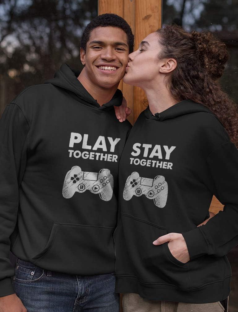 Tstars Matching Couple Hoodies Set Play Together Stay Together Funny Gamer Valentine(Stay Black / Play Black)