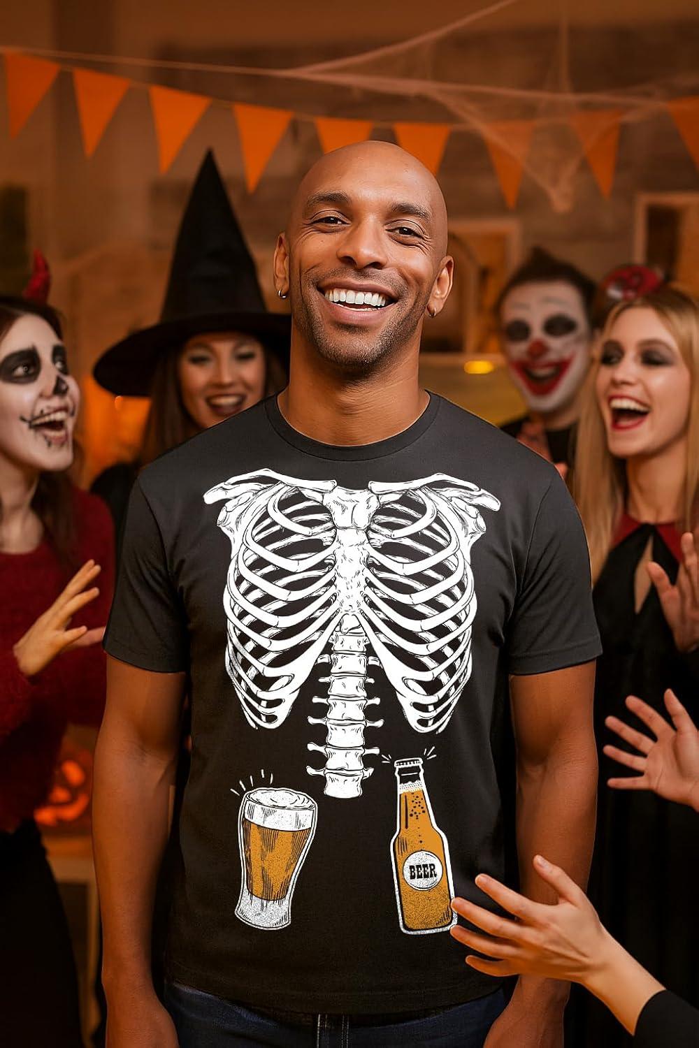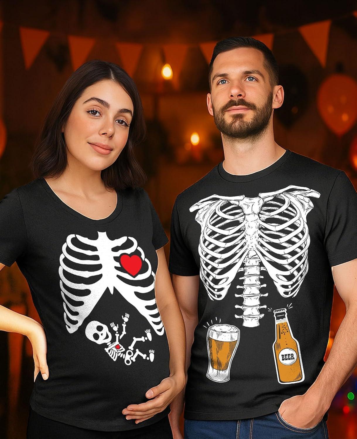 Tstars Maternity Skeleton Xray Halloween Shirt with Baby Boy Print – Mom & Dad Couples Pregnancy Matching Tops(Dad Black / Mom Black)