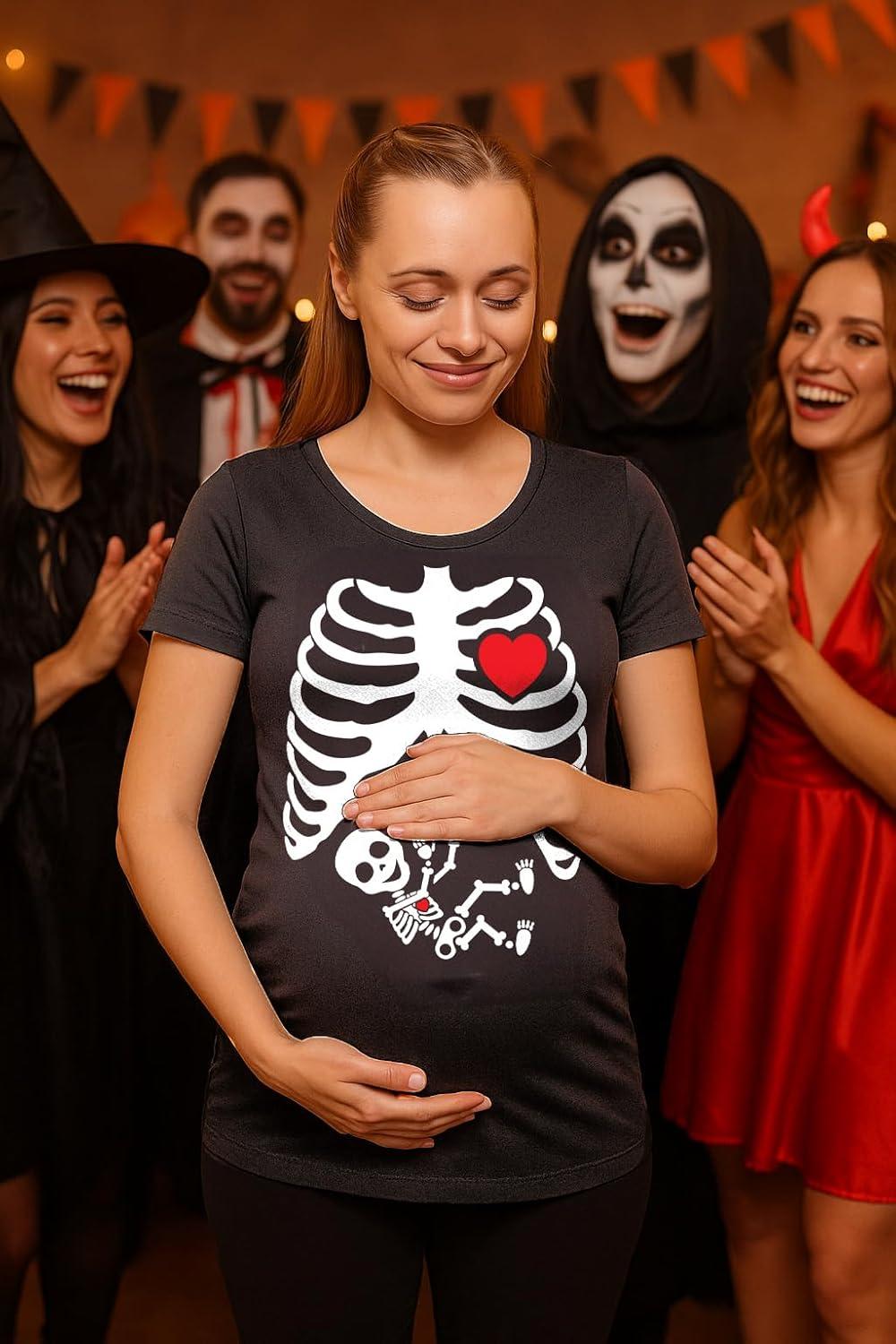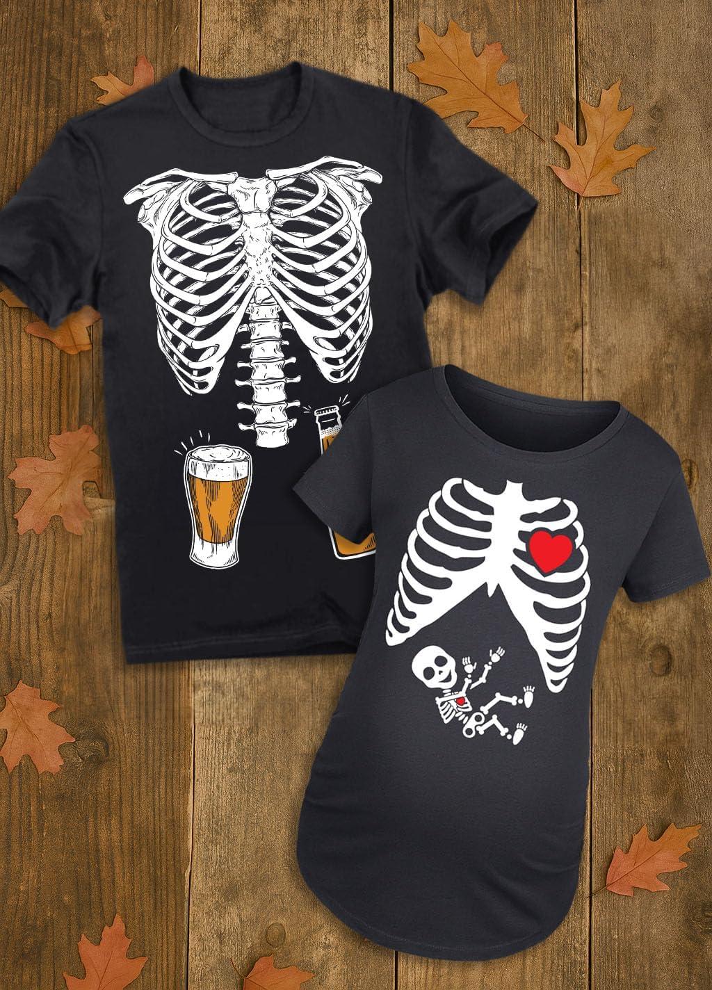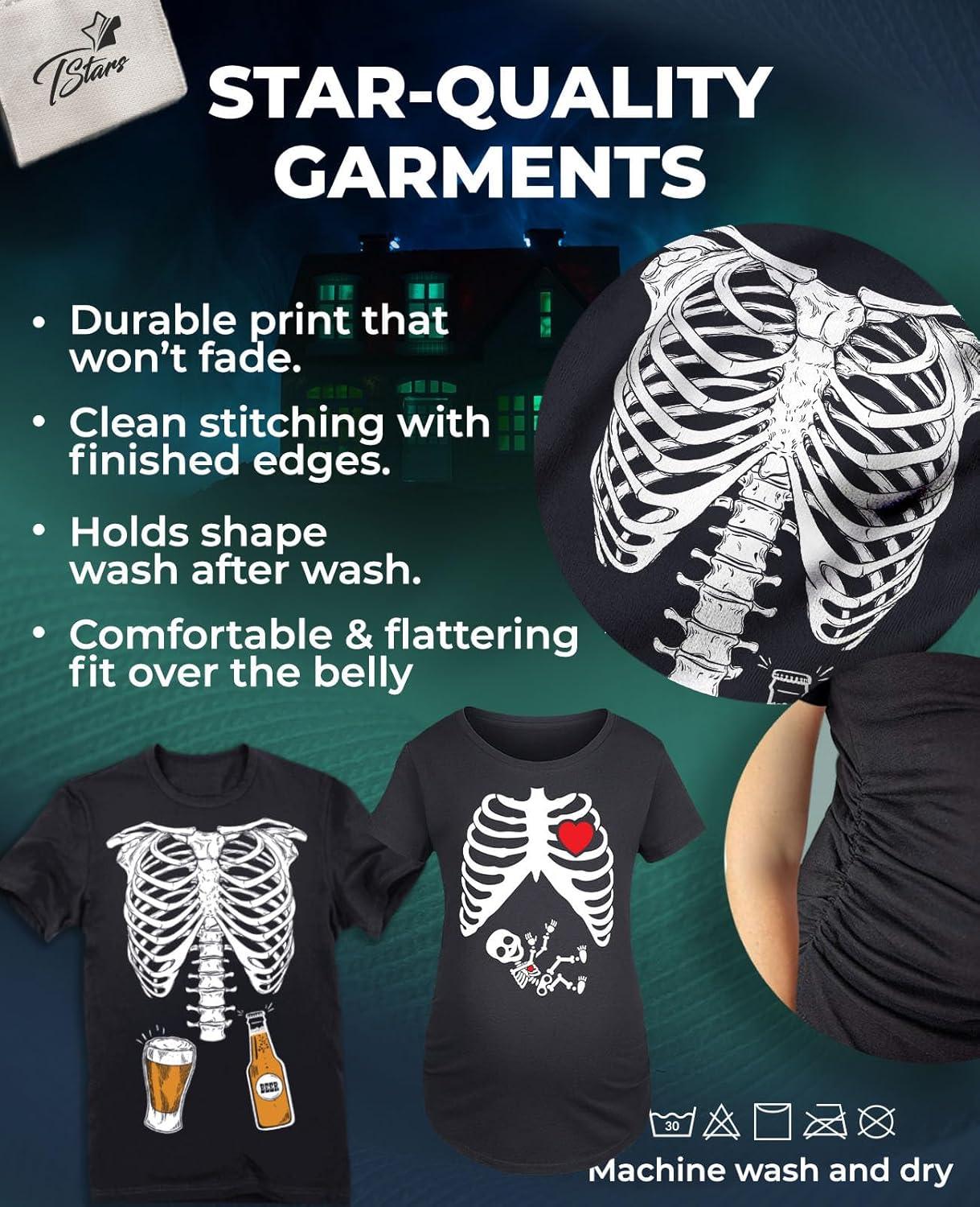 Tstars Maternity Skeleton Xray Halloween Shirt with Baby Boy Print – Mom & Dad Couples Pregnancy Matching Tops(Mom Black / Dad Black)