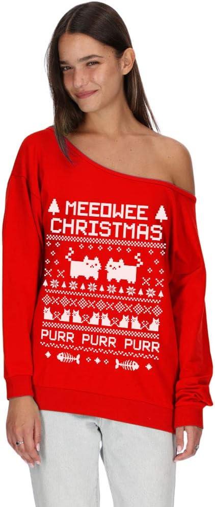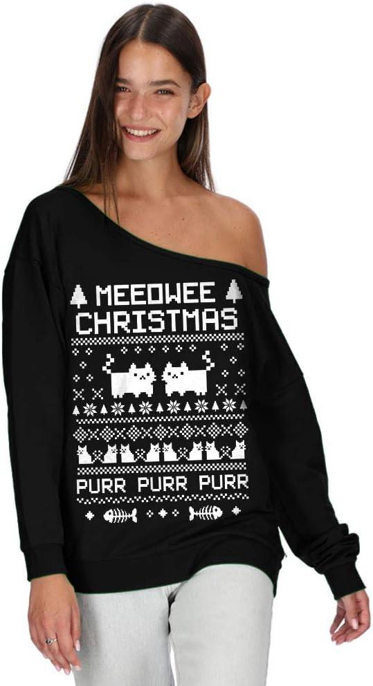 Tstars Meeowee Christmas Ugly Sweater – Cute Xmas Party Off Shoulder Sweatshirt(Black)