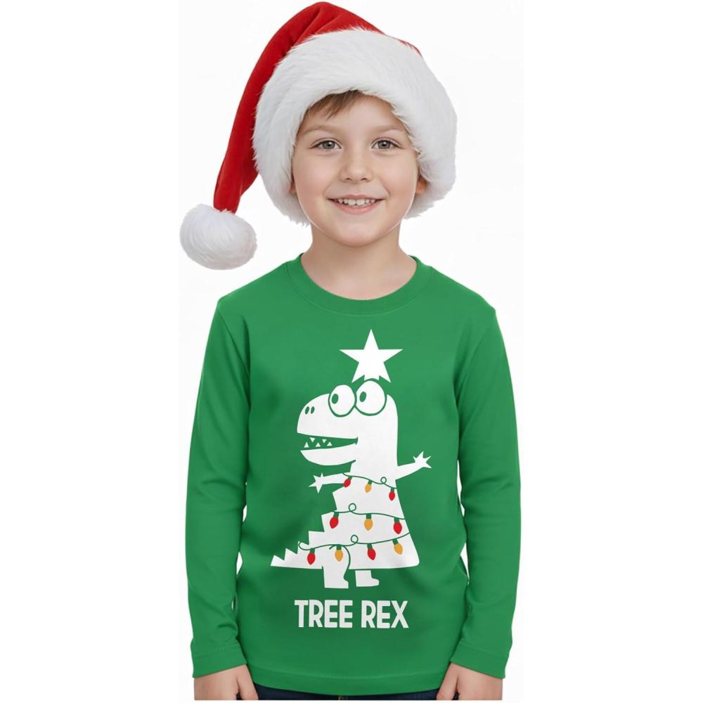 Tstars Merry Swishmas Basketball Shirt – Funny Ugly Christmas Sweater Style Kids Long Sleeve Festive Holiday Tee(Trex Tree / Green)