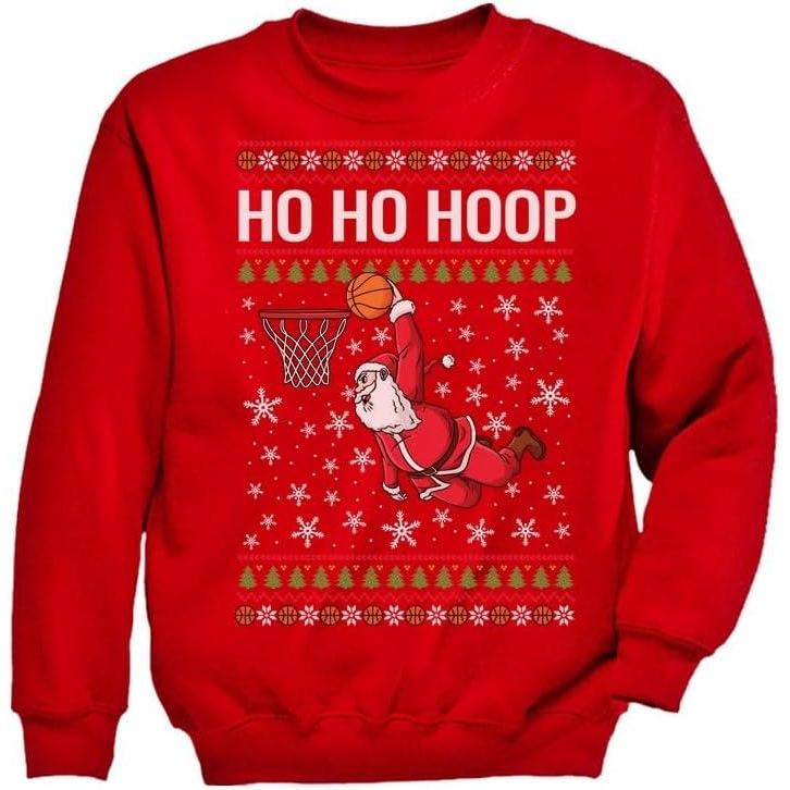 Tstars Merry Swishmas Basketball Sweatshirt for Kids – Youth Ugly Christmas Sweater Style Pullover(Hoop / Red)