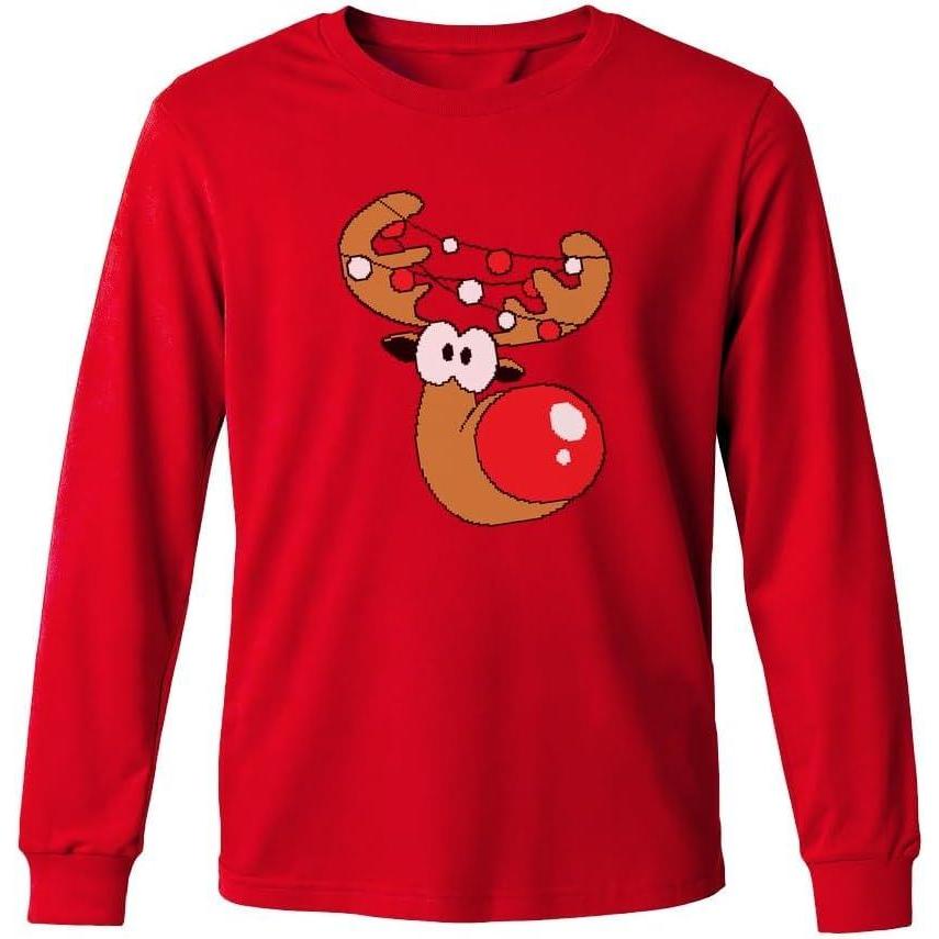Tstars Merry Swishmas Boys Basketball Shirt – Funny Ugly Christmas Sweater Style Youth Long Sleeve Holiday Tee(Red Nose / Red)